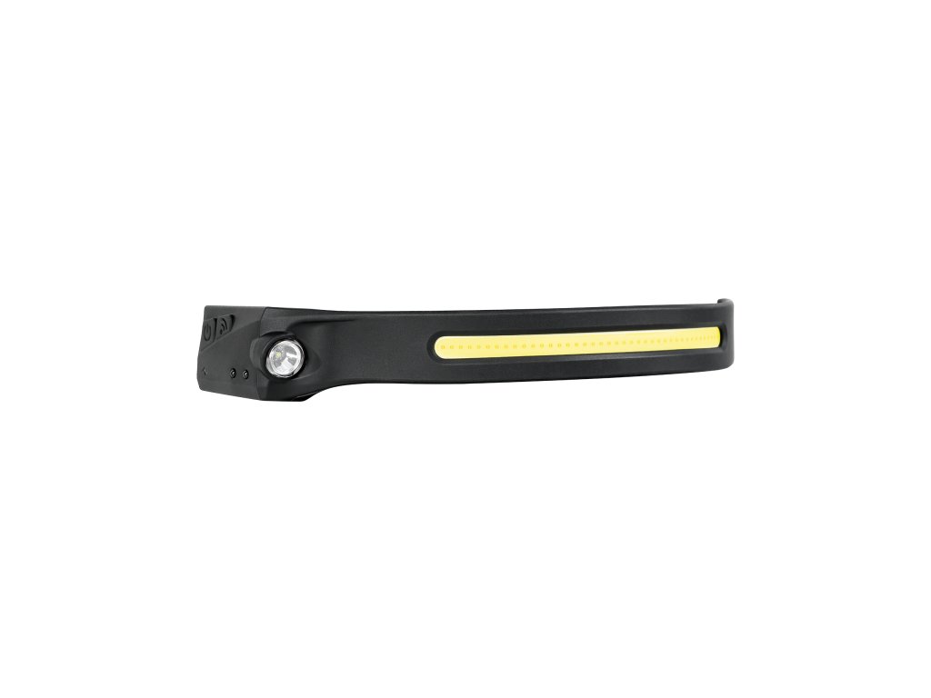 Ugodnost korištenja uređaja osigurava izvedba u obliku trake za glavu s dva izvora svjetla. Prvi od njih COB nudi širokokutno osvjetljenje s dosegom od 20 m i jačinom od 350 lm. Svjetiljka je opremljena i LED diodom, koja generira svjetlosni snop s dosegom od 60 m i svjetlinom od 150 lm. Svaki izvor svjetlosti ima dodatne režime osvjetljenja. Ovisno o vašim potrebama, možete postaviti snažno ili slabo svjetlo ili funkciju stroboskopa.