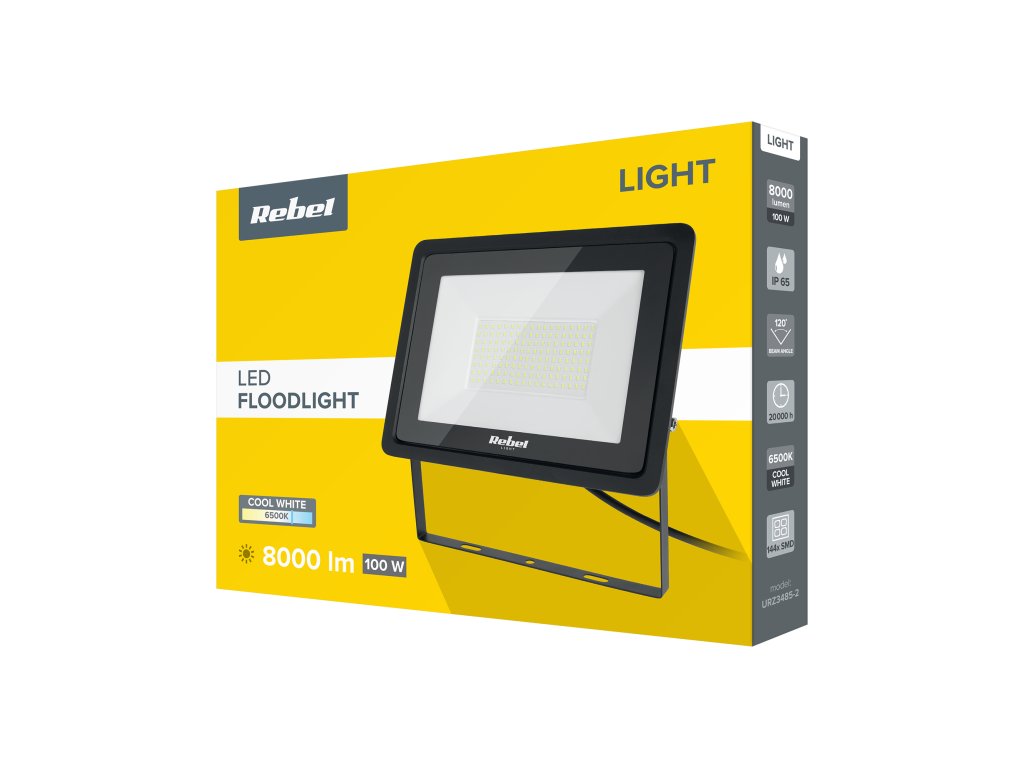 Źródło światła: 144 szt. 2835 SMD Moc: 100 W Temperatura barwowa: 6500 K Strumień świetlny: do 8000 lm Efektywność: 80 lm/W Współczynnik mocy: 0,9 Kąt świecenia: 120° CRI: > 80 Klasa ochronności: I Stopień ochrony: IP65 Temperatura pracy: -20°C - +40°C Żywotność: 20 000 godz. Zasilanie: 220-240 V; 50/60 HzŹródło światła: 144 szt. 2835 SMD
