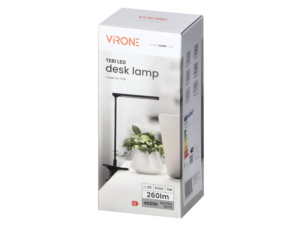Poboljšajte svoj radni prostor elegantnom LED stolnom lampom s klipom, 5W, 4000K, crna. Ova stilizirana lampa kombinira moderan dizajn s energetski učinkovitim osvjetljenjem, idealnim za rad, učenje ili čitanje.