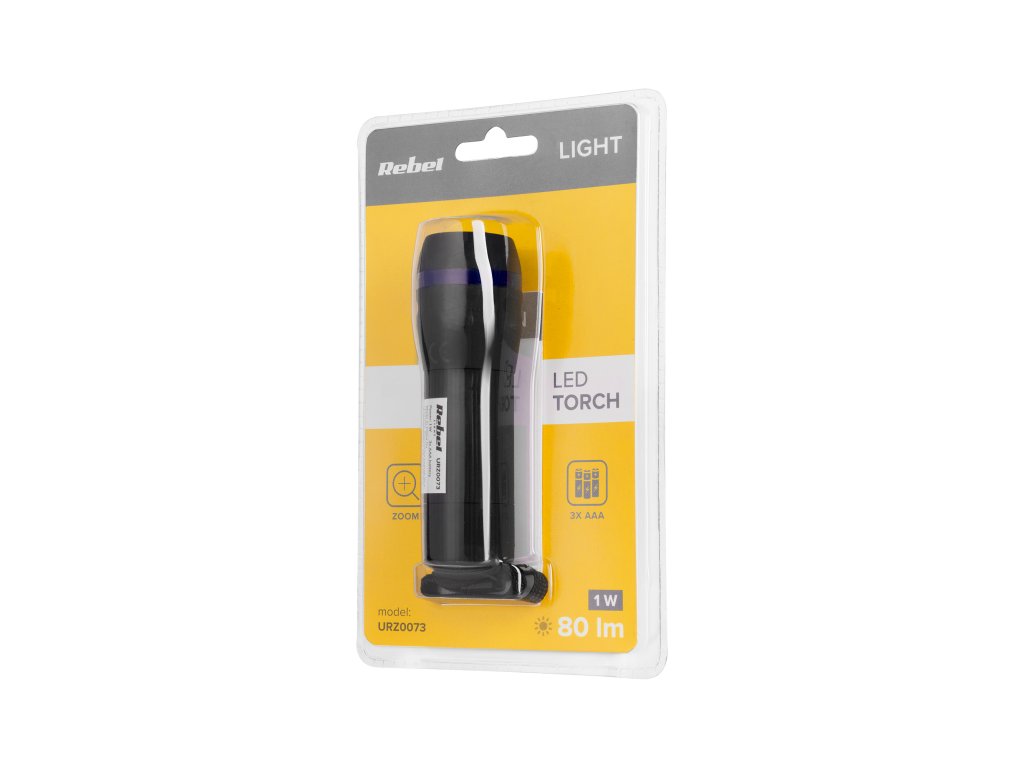 Jednostavna baterijska lampa Rebel je pomoćnik u svakom, čak i najmanjem poslu, gdje nema vremena za premještanje uređaja s mjesta na mjesto. Postavljanjem kuta svjetla postaje funkcionalna i vrlo korisna. Izvor svjetlosti baterijske lampe je 1 W LED dioda, a njen svjetlosni učin je 60 - 80 lm. Udobno aluminijsko kućište će funkcionirati u svim uvjetima, a jedino što VIPOW zahtijeva su tri AAA baterije.