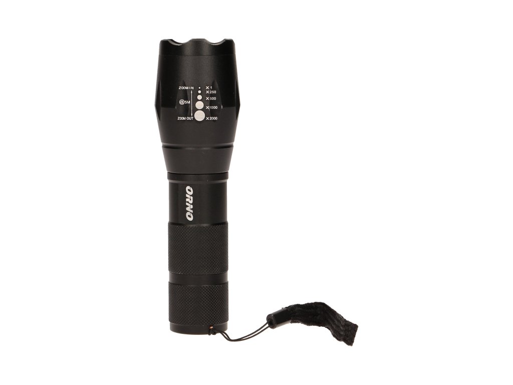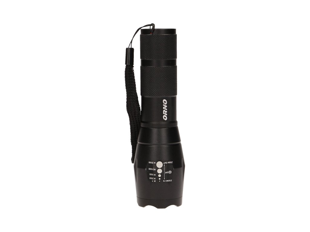 Svjetiljka s čvrstim aluminijskim kućištem s funkcijom ZOOM 5 načina: jaka bijela svjetlost, srednja bijela svjetlost, slaba bijela svjetlost, stroboskop, SOS.Dodatni parametri