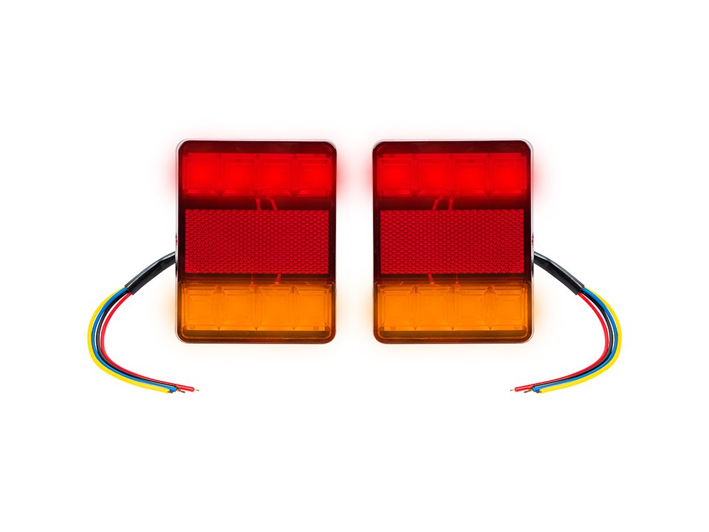 - Komplet sadrži: Dva komada LED svjetala koja osiguravaju kompletno osvjetljenje stražnjeg dijela prikolice uključujući funkcije kao što su stražnja svjetla, kočiona svjetla i pokazivači smjera.