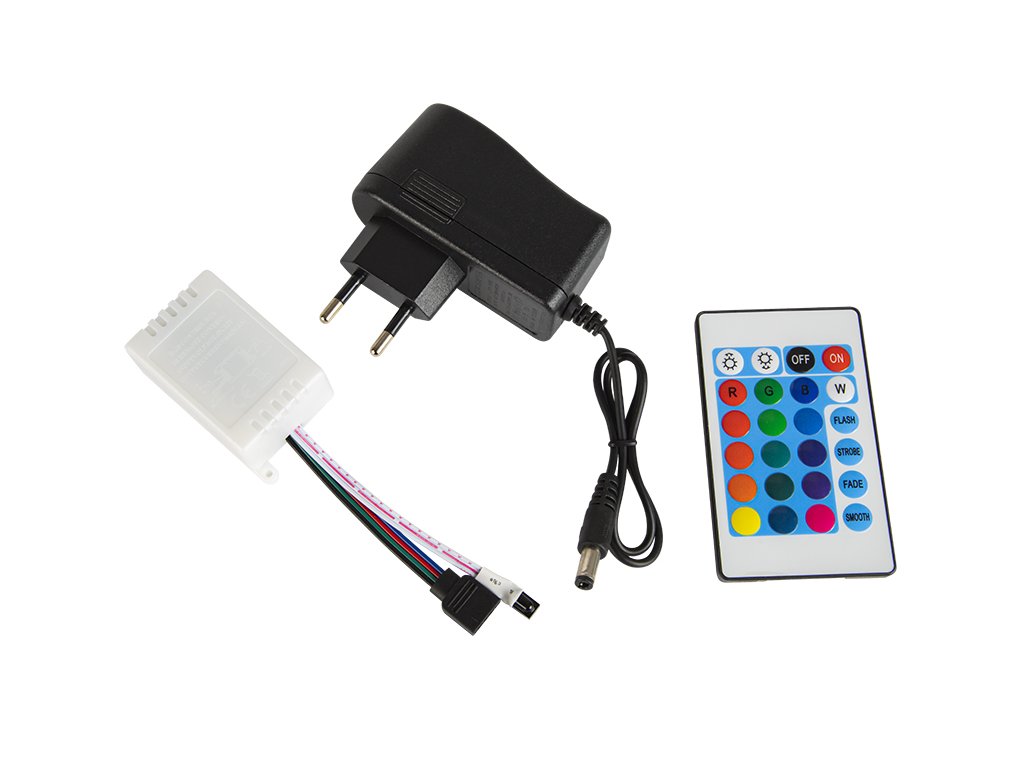 - Duljina napojnog kabela: cca. 35 cm RGB LED traka s upravljačem i napajanim izvorom. Proizvod je izrađen na fleksibilnoj i izdržljivoj traci sa PCB podlogom. Izvor svjetlosti su SMD LED diode koje emitiraju snažnu svjetlost. Zahvaljujući mogućnosti dijeljenja (svakih 5 cm - 3 LED diode) traka se može koristiti na mnogo načina. Idealna je za osvjetljenje podova, namještaja, izloga, reklama, stepenica, akvarija itd. Može se koristiti i za stvaranje svjetlosnih akcenata u klubovima, ugostiteljskim objektima, kao i za vanjsko osvjetljenje kuće. Instalacija na tlo je moguća zahvaljujući obostranoj ljepljivoj traci 3M koja je korištena na dnu.