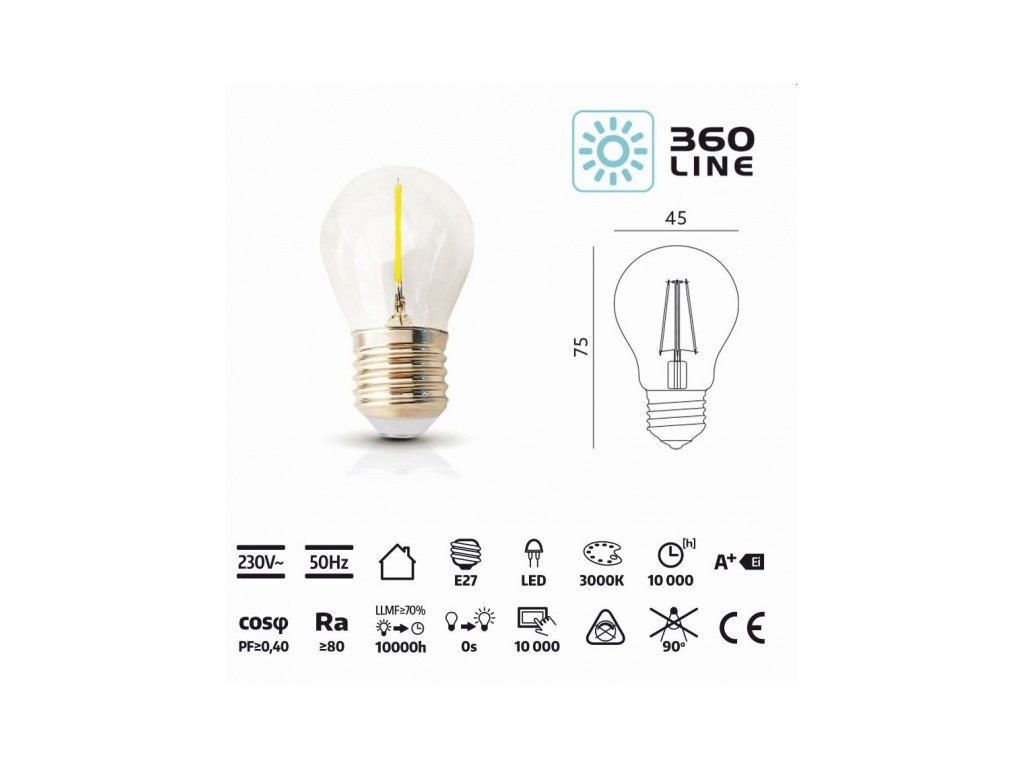 LED žarulja 1,3W, E27, 3000K, 230V, LED filament, globo