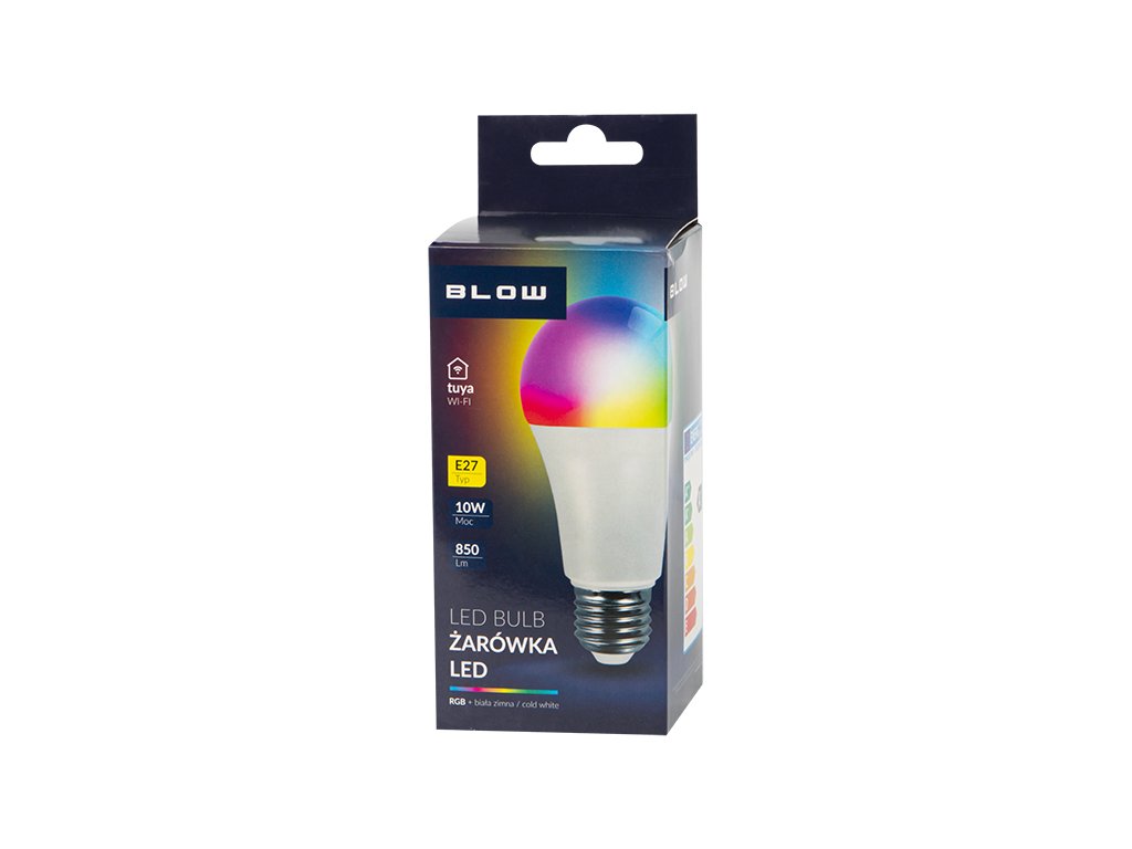 Specifikacija:Tehnologija: LEDTip navoja: E27Oblik: kuglaSnaga: 10 WSvjetlina: 840 lmBoja svjetla: RGB + bijelaSpecijalizirana aplikacija: TUYA Smart / SMART Life (dostupna na Google Playu i App Storeu)Mogućnost glasovnog upravljanja: DAPrimarna struja: 220-240 V AC, 50/60 HzEnergetski razred: A+ Svjetlo marke BLOW izrađeno je s modernim rješenjima koristeći inovativnu LED tehnologiju, kojaése odlikuje visokoučinkovitim parametrima osvjetljenja. Pomoću specijalizirane aplikacije na pametnom telefonu ili tabletu možemo proizvoljno mijenjati boje iz dostupne palete boja. Osim toga, tu je mogućnost glasovnog upravljanja pomoću glasovnih asistenata Amazon Alexa i Google Assistant. Glavne značajke - Inovativna LED tehnologija - Specijalizirana besplatna aplikacija TUYA Smart / SMART Life - dostupna u trgovini Google Play i App Store- Upravljanje žaruljom prema vašim preferencijama - jednostavno i intuitivno upravljanje aplikacijom