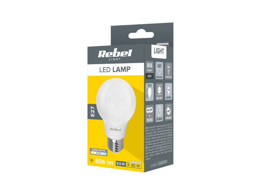 LED žarulja E27 8,5W 3000K 230V ZAR0551Tehnički podaci: