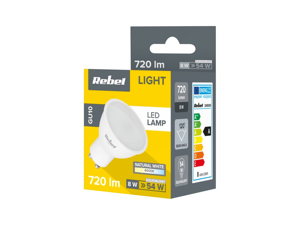 ---------- Dopasowanie do oprawy: ---------- Lampa LED (15x2835 SMD) Kształt: Reflektor Trzonek: GU10 Możliwość przyciemniania: Nie Napięcie: AC 220 - 240 V ---------- Pobór mocy: ---------- Moc: 8 W Odpowiednik żarówki tradycyjnej: 54 W Współczynnik mocy: >0,55 Etykieta efektywności energetycznej: A ---------- Właściwości światła: ---------- Strumień światła: 720 Lm Kolor światła: neutralny Temperatura barwowa:4000 K Czas rozświetlania: Natychmiastowa pełna jasność LLMF: >88% Kąt świecenia: 120° ---------- Trwałość: ---------- Liczba cykli włączenia: 15 000 Trwałość znamionowa: 15 000 h ---------- Wymiary: 50 x 54 mm Zawartość rtęci: 0 mg----------
