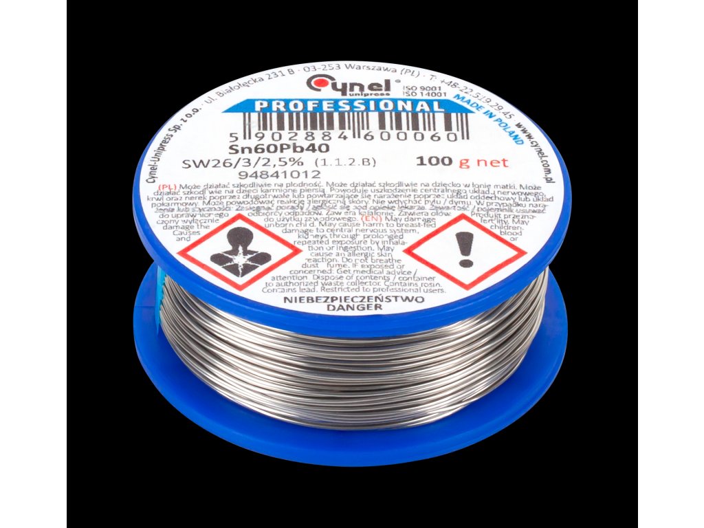 Kosit promjera 0,56 mm, pakiranje 100 g, sastav - 60% kositra, 40% olova, fluks, CYNEL