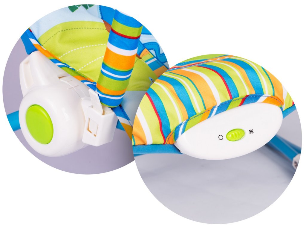Umirujući vibracijski režimJednostavnouključite vibracije na ležaljci i udobno smjestite svoju bebu. Vaše dijete će se nakon nekog vremena opustiti i zaspati, dok se vi možete posvetiti svojim obavezama.