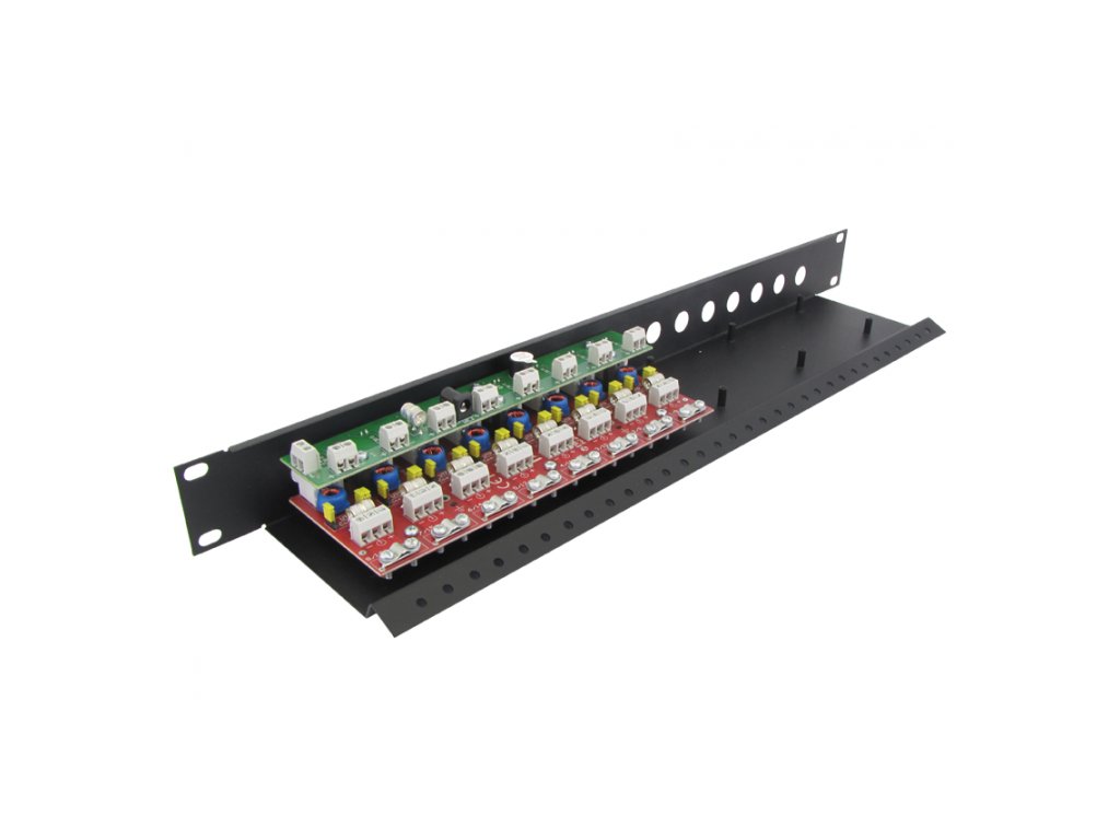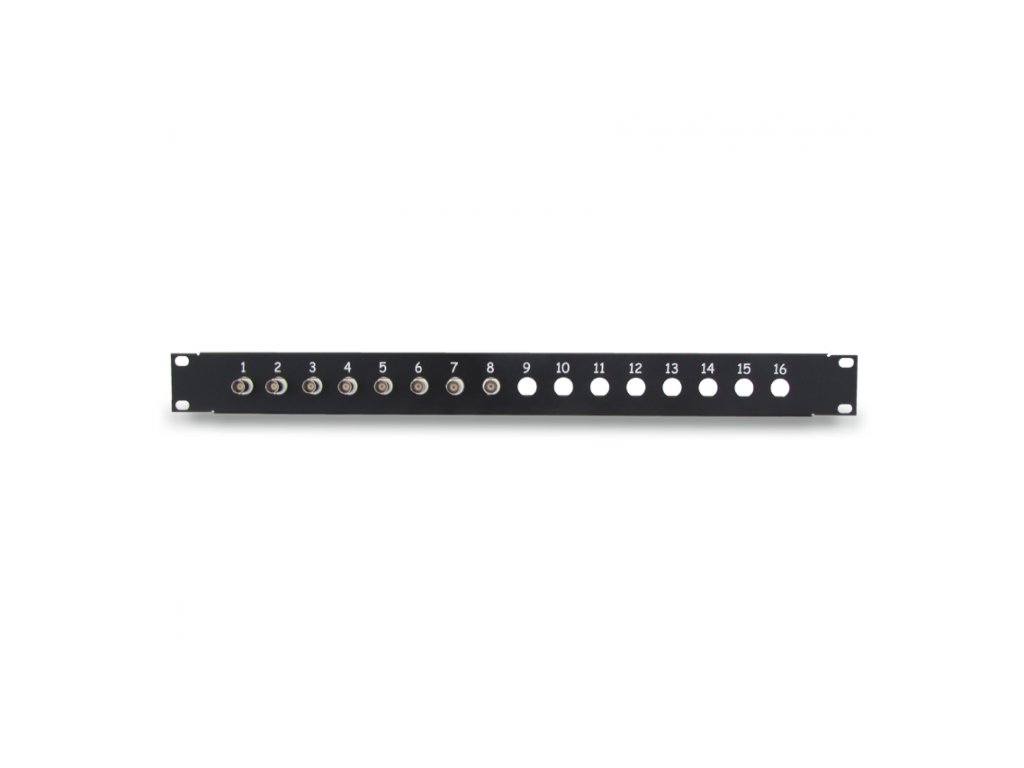 Ugrađeni distributer napajanja kamera FPS - može neovisno napajati do 16 kamera, modul je opremljen zaštitom od kratkog spoja ili prenapona. Modul je opremljen indikatorom napona i zvučnim indikatorom kratkog spoja. Velika prednost patch panela je vrlo niska kapacitet kruga (2~4pF), zbog čega zaštita ima minimalni utjecaj na prijenos signala od 0 ~ 100MHz, što je za složene signale AHD, HD-CVI i HD-TVI vrlo važno, jer ne uzrokuje velike gubitke.