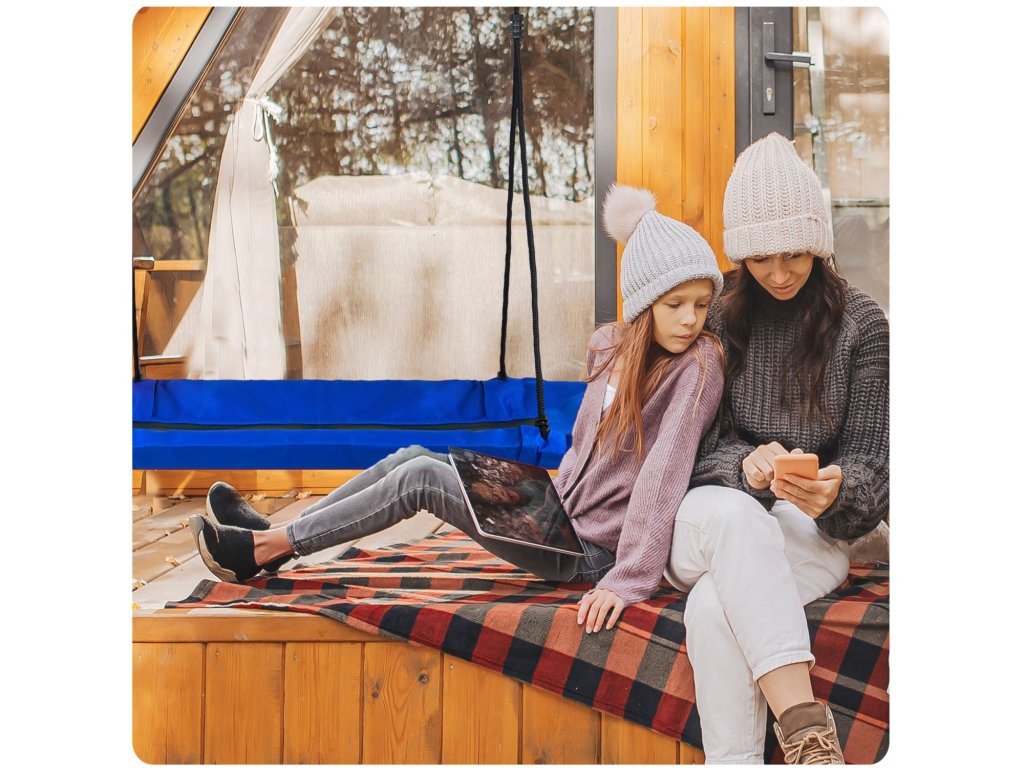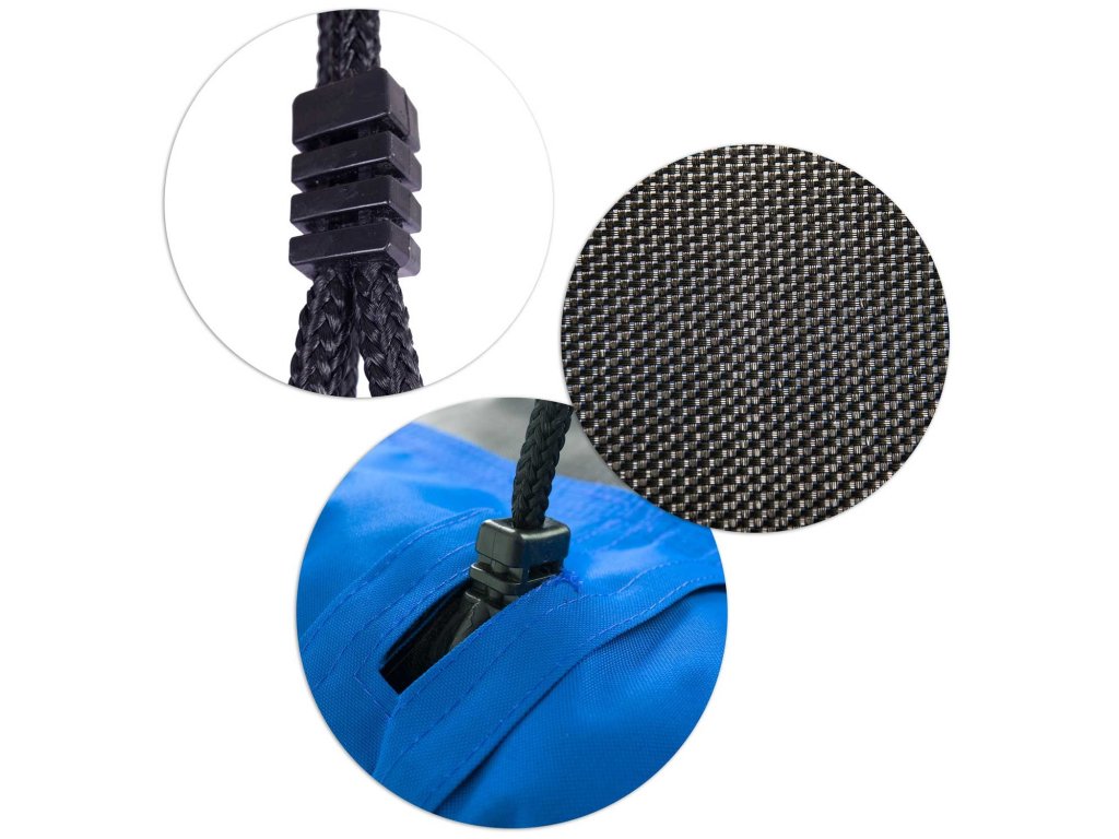 To je odlična zabava za mlađe i malo starije. Ljuljačka na čeličnom okviru prekrivena mekom zaštitnom pjenom, izrađena od izdržljivog materijala s višestrukim šavovima i na debelim visećim užadima. Osigurava sigurnost, stabilnost i izdržljivost. Poliester Oxford 600D, od kojeg je sjedište izrađeno, je vodootporan i lako se čisti.