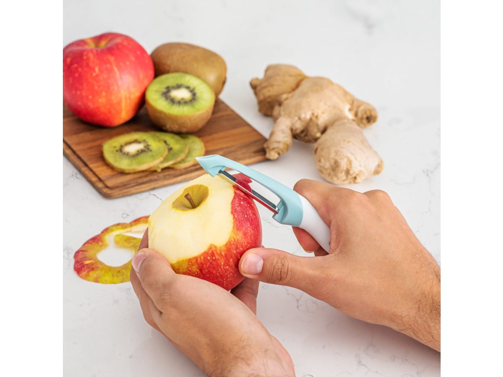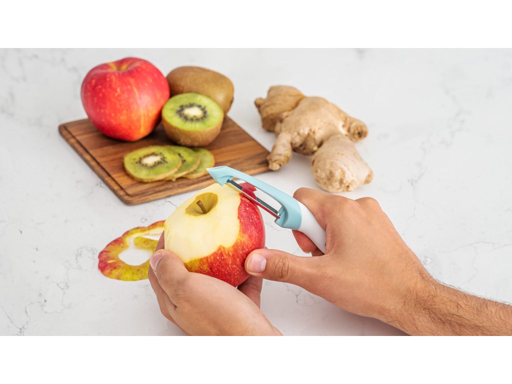 Oštrica noža izrađena je od nehrđajućeg čelika, koji u kombinaciji s čvrstom izradom jamči izdržljivo i pouzdano korištenje. Kako biste produžili vijek trajanja noža za ljuštenje povrća i voća Teesa, nemojte ga prati u perilici posuđa.