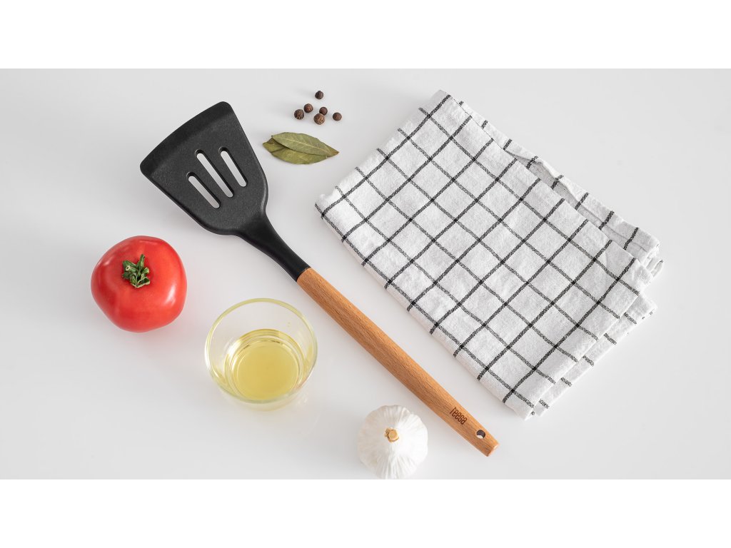 To je univerzalni alat za okretanje hrane i ispuštanje viška vode ili masnoće. Idealna je za prženje ribe i omleta. Profilirani, fleksibilni i blago šiljasti dizajn strugača u kombinaciji s udobnom drvenom ručkom olakšava podizanje zalijepljene hrane bez oštećenja tave.