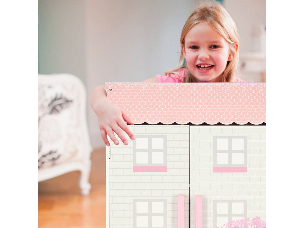 Otvorena kuća za lutke u šarmantnom stilu neće biti samo mjesto za kreativnu igru, već i ukras dječje sobe. Kućica ima tri kata s kuhinjom, kupaonicom, spavaćom sobom, dnevnim boravkom i stubištem. Vrata i ladice koje se zaključavaju pomoću magneta olakšavaju održavanje reda u sobi - igračke unutar nje lako ćete pospremiti nakon igre.