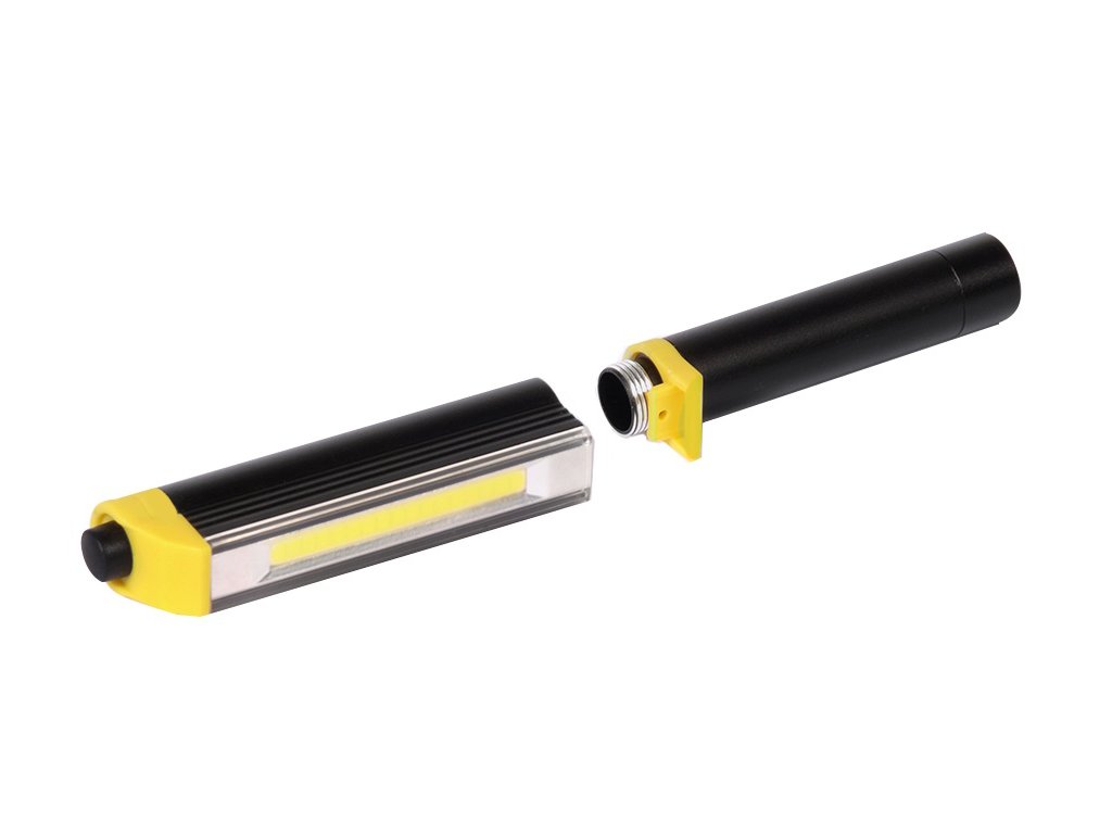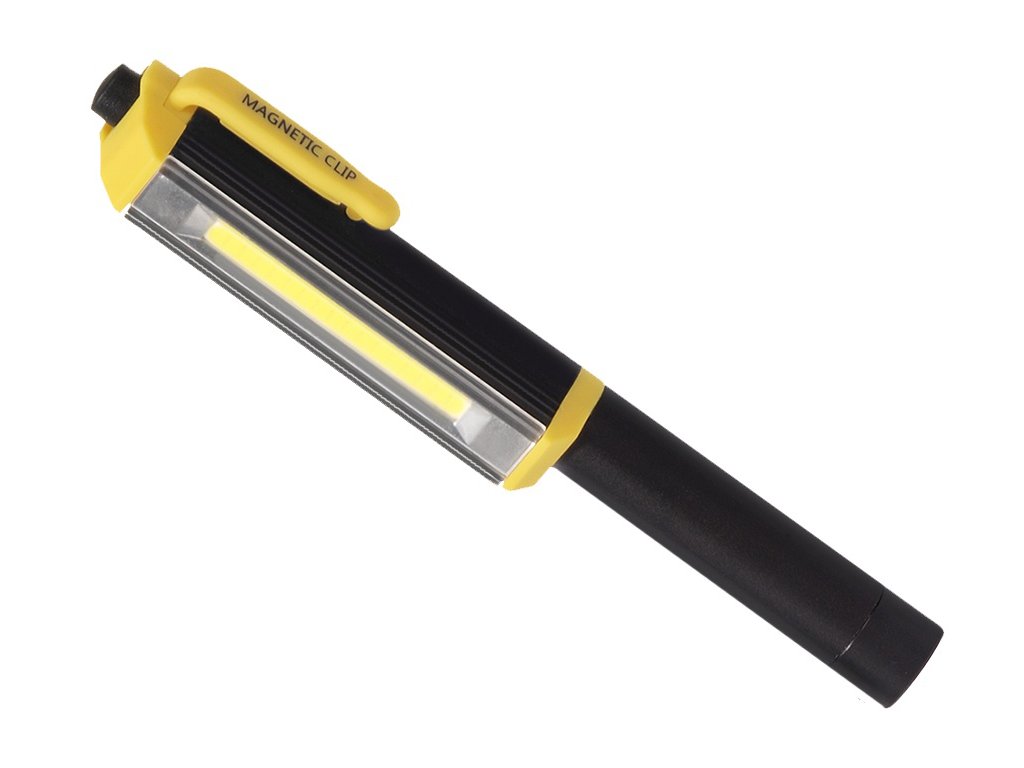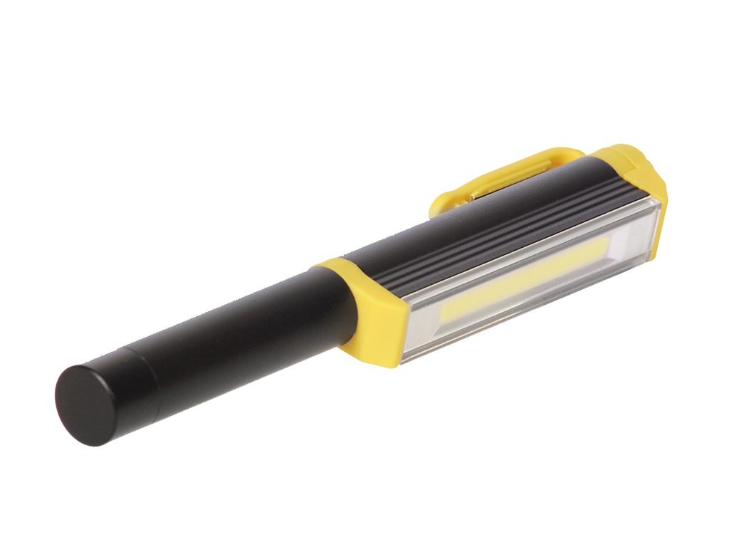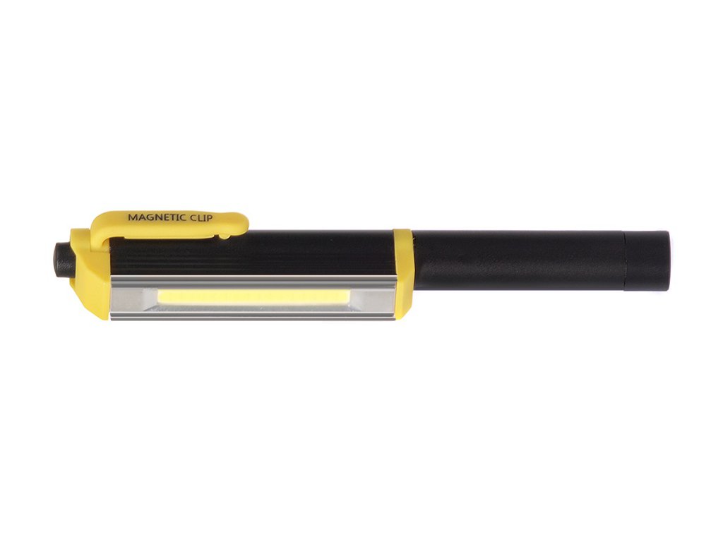 Model: MCE121 B Źródło światła: 1 COB mocy 3W Obudowa wykonana z ABS oraz aluminium Uchwyt: magnetyczny klip z możliwością obracania o 180o Zasilanie: baterie 3 x AAA (nie dołączone) Kompaktowa Łatwe przenoszenie Wymiary: 16*1.5 cm Waga: 59gModel: MCE121 B