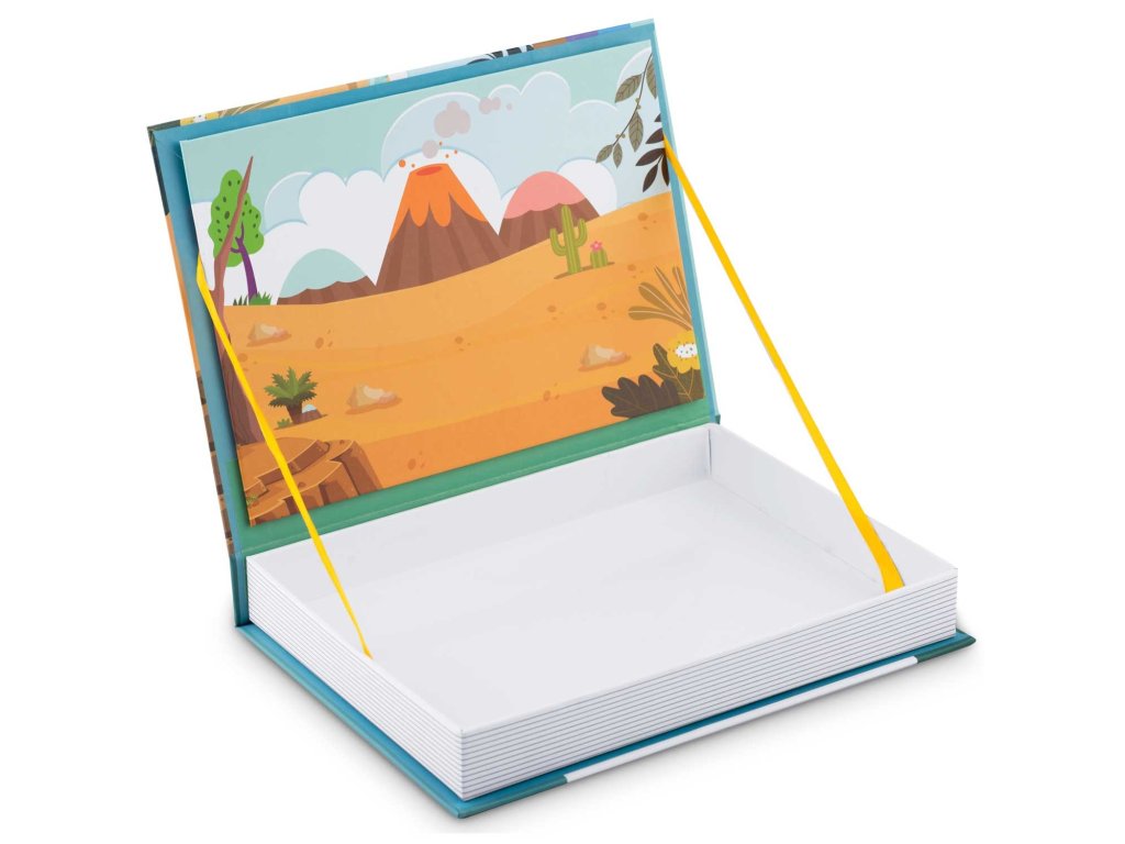 - pakiranje sadrži magnetnu pozadinu za pričvršćivanje dinosaura, koristi se i kao pretinac za skladištenje.