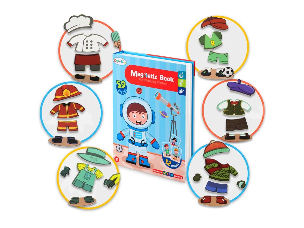 Miješanjem i spajanjem magnetskih odjevnih predmeta s podlogom djeca usavršavaju svoje motoričke vještine, otkrivaju razne stilove i razvijaju svoju kreativnost – i sve to uz zabavu.