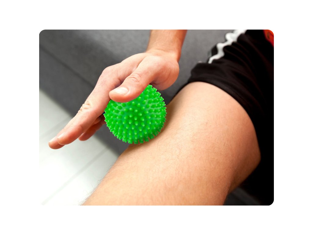 Opuštanje napetih mišića: Šiljci na lopti pomažu masirati mišiće, oslobađajući napetost i bol, posebno nakon intenzivnog treninga.