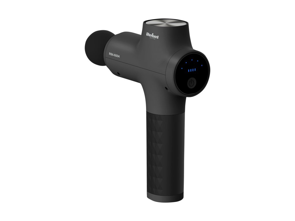 Rebel masažna pištolj je opremljena ugrađenom baterijom od 1800 mAh. To znači da, ovisno o odabranom postavku brzine, može raditi do 4 sata na jedno punjenje. Status baterije možete brzo provjeriti pomoću LED indikatora na kućištu.