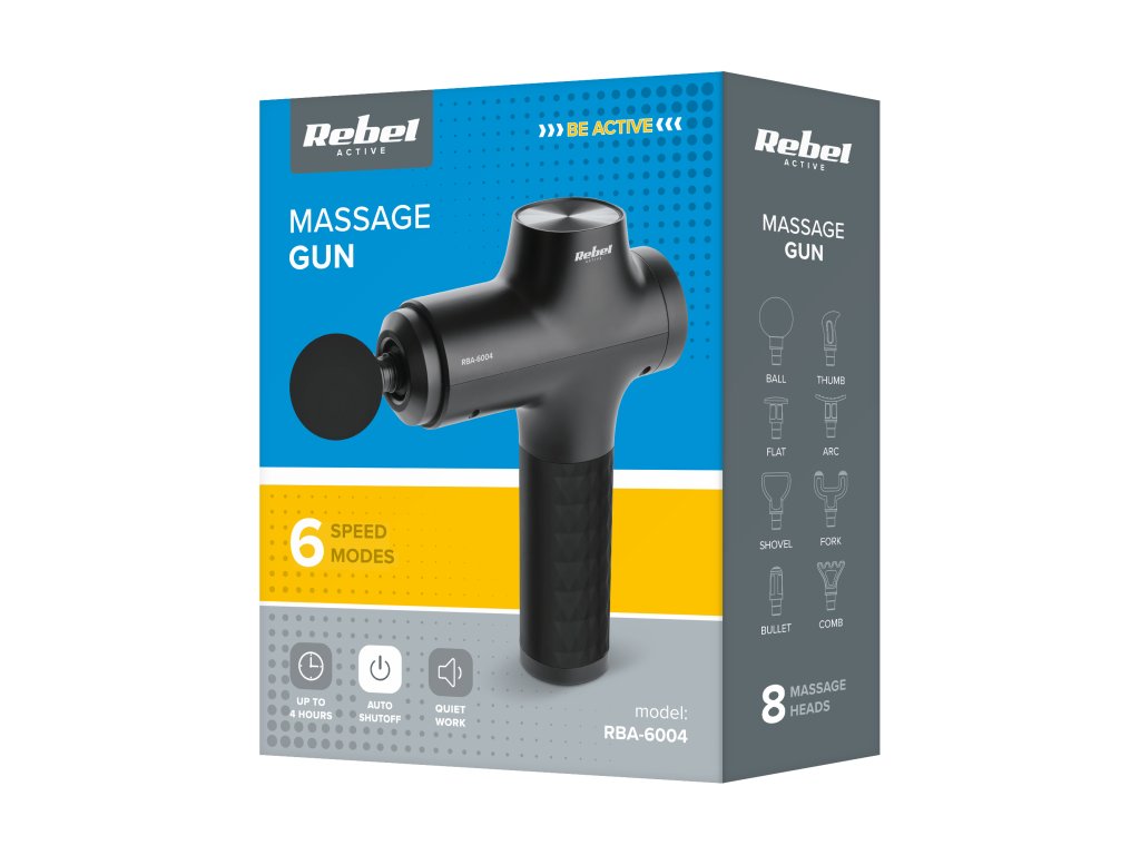 Masažna pištolj, 8 nastavaka, REBEL ACTIVE