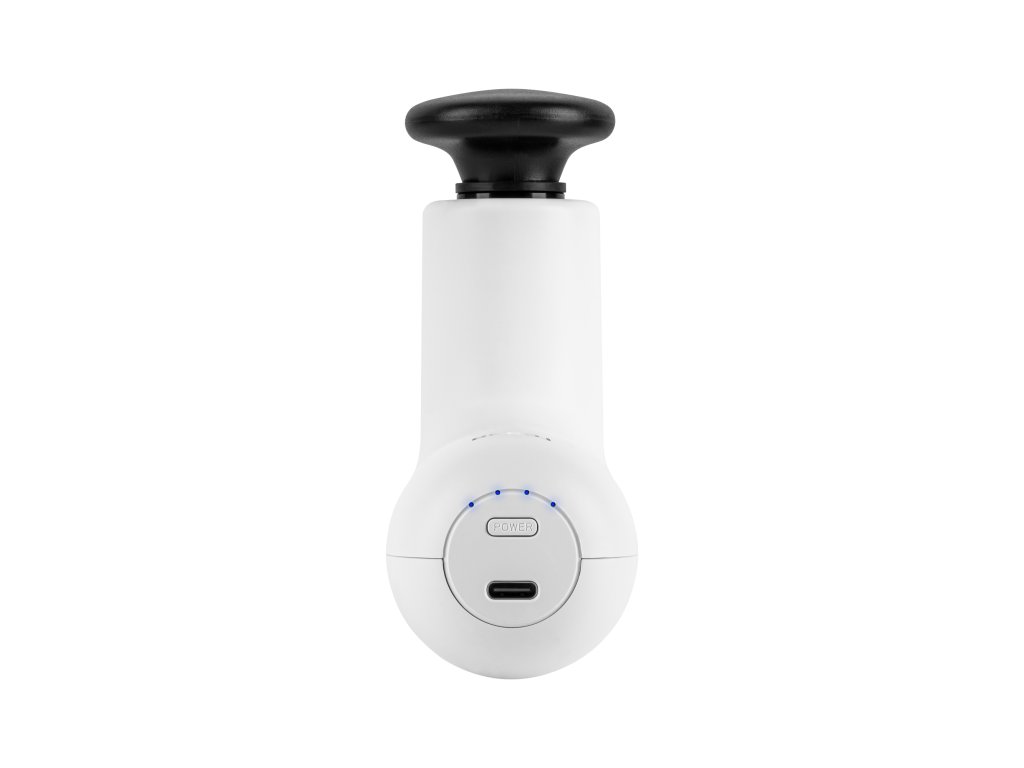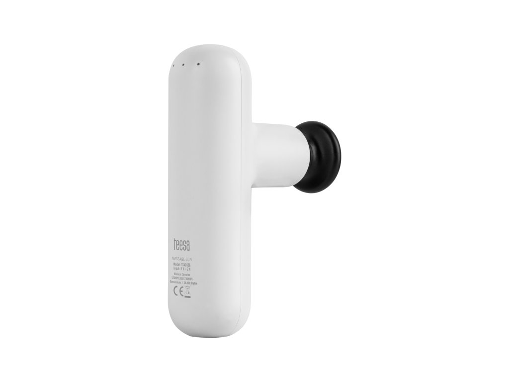 Masažna pištolj za mišiće Teesa ima ugrađenu punjivu bateriju kapaciteta 2000 mAh, tako da možete uživati u njenim sposobnostima dugo vremena. O stanju napunjenosti baterije informira vas LED indikator na kućištu. U slučaju potrebe, uređaj možete puniti pomoću priloženog USB-C kabela.