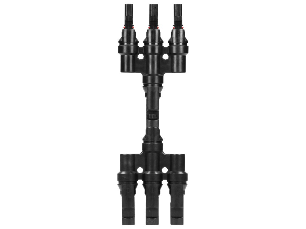 MC4 konektor 3xMC4, tip T za fotonaponske ploče PV-13610 pomaže povezati ploče na profesionalan, siguran i brz način. Ovaj proizvod je kompatibilan s PV vodičima: 1,5-6mm2. Dugi vijek trajanja uređaja osigurava kvalitetna površinska obrada. Stupanj zaštite IP67 osigurava otpornost na vodu i prašinu. Ovi razdjelnici također su otporni na UV zračenje i teške vremenske uvjete.