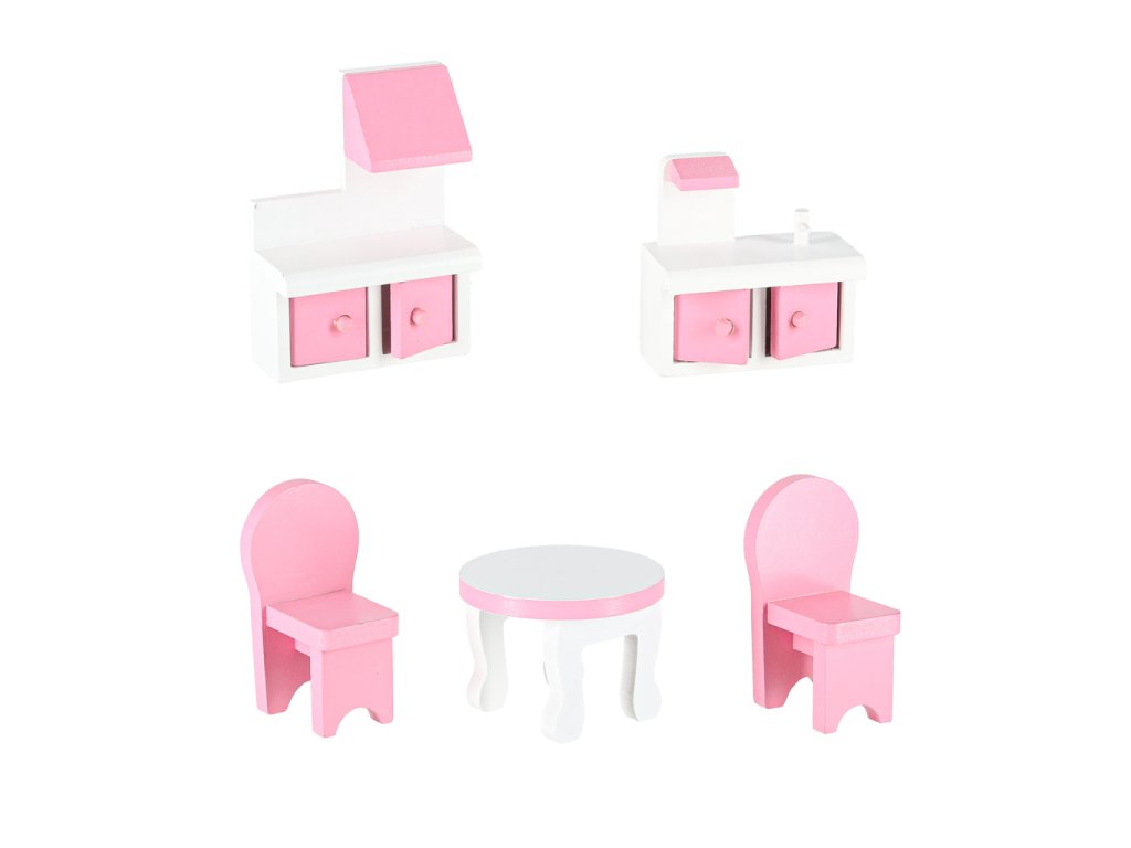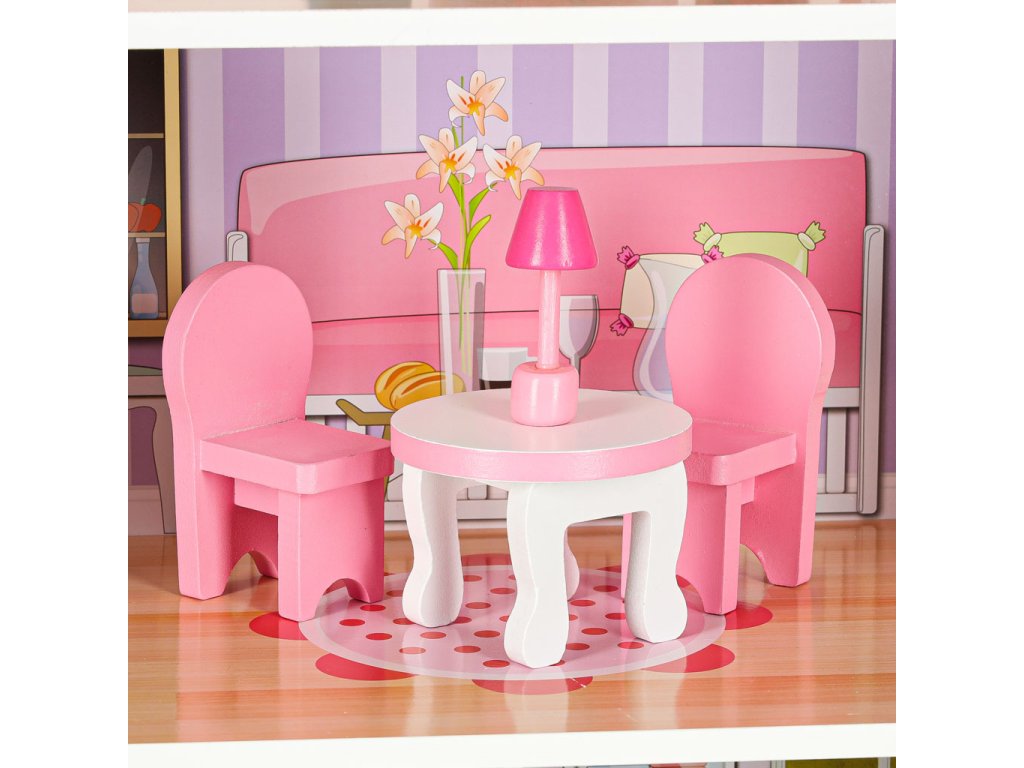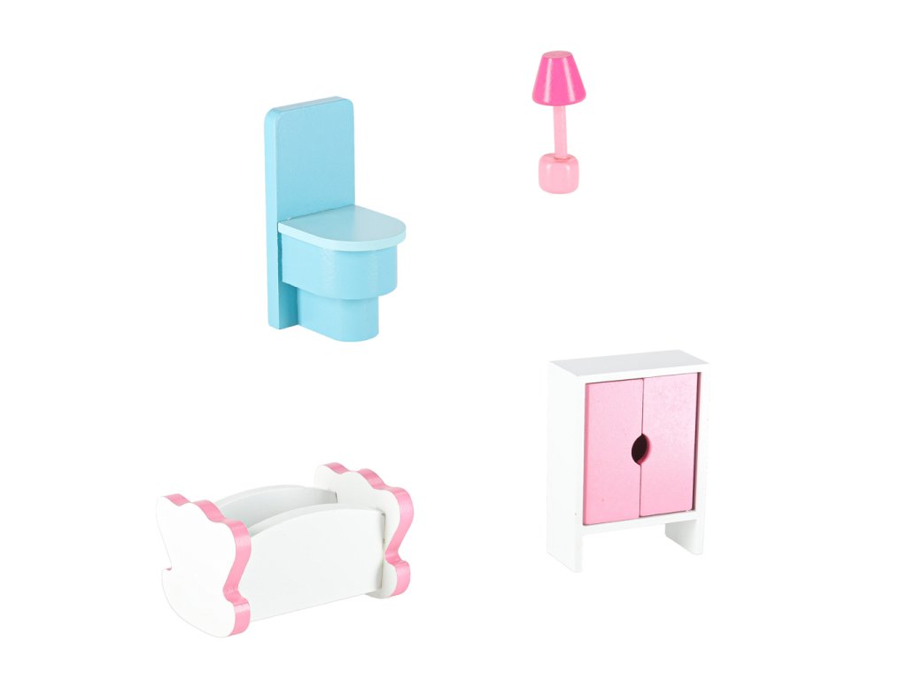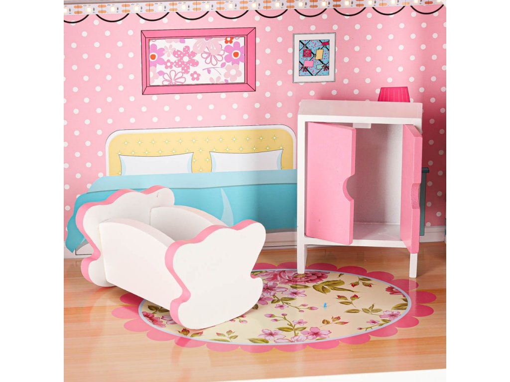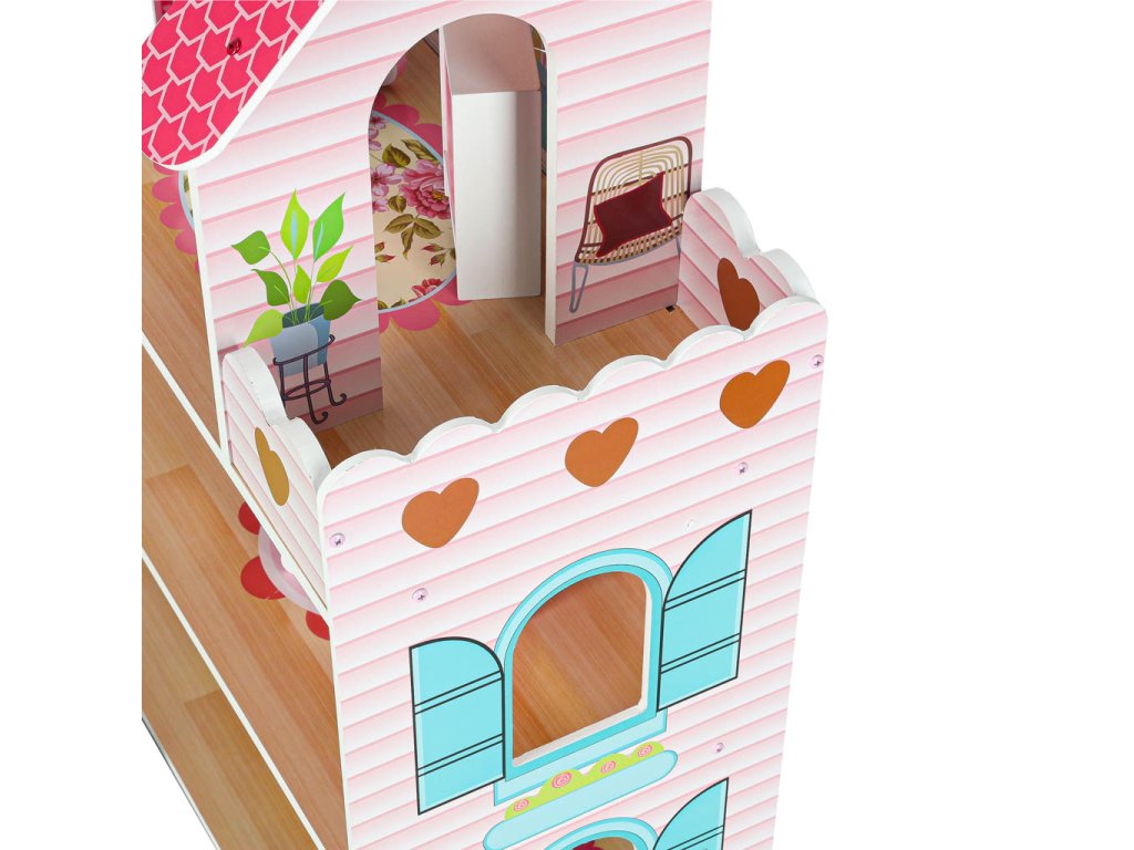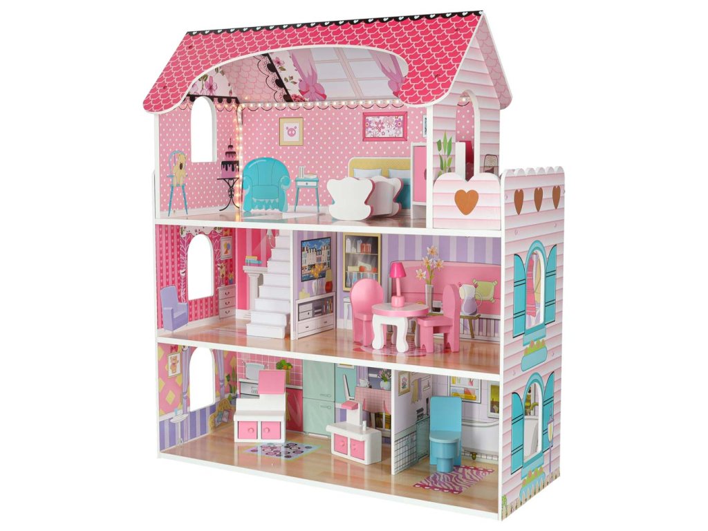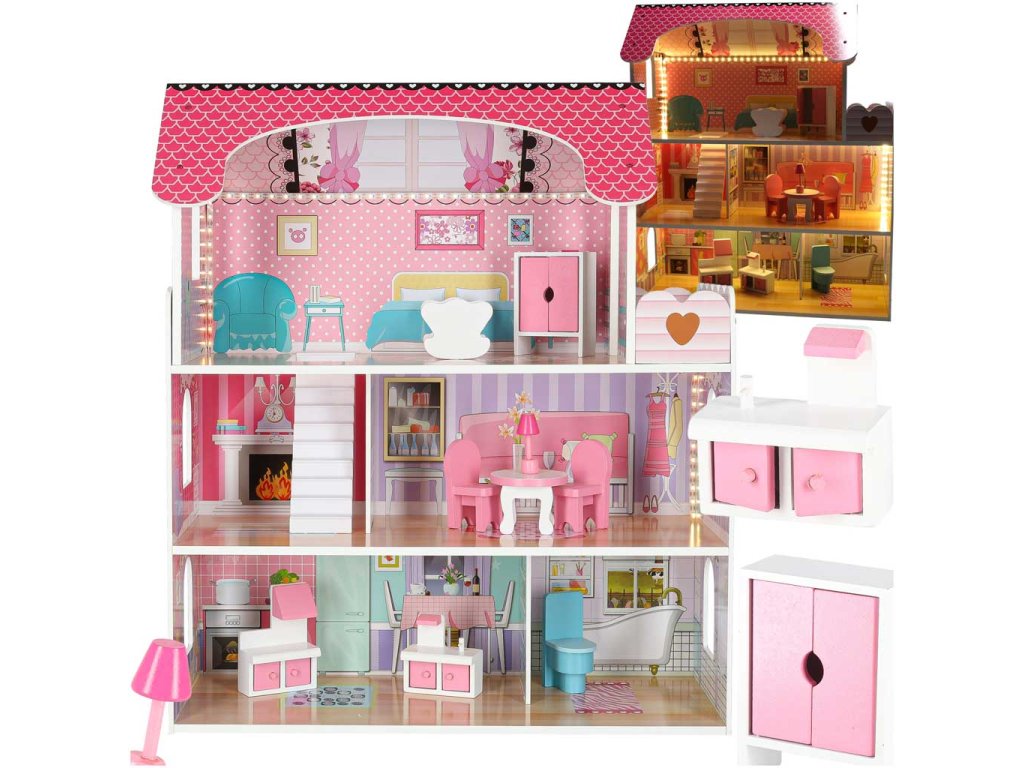 MDF drvena kućica za lutke + namještaj 70cm ružičasta LED