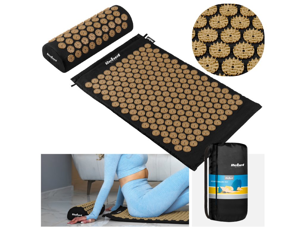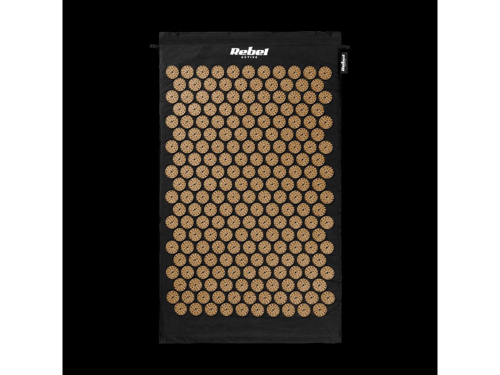 Medicinski prostirač s bodljama za akupresuru s jastukom, 72x42cm, zlatne bodlje, Rebel Active