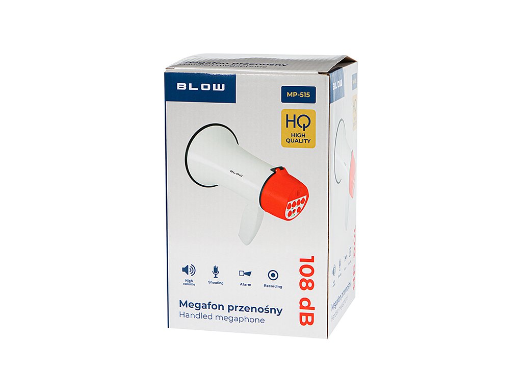 Vrlo glasan megafon, 108dB, omogućuje nam prednost našeg glasa tijekom prosvjeda, mimohoda ili hodočašća. Također ima funkciju sirene koja se može uključiti prekidačem (na primjer, policijska sirena).