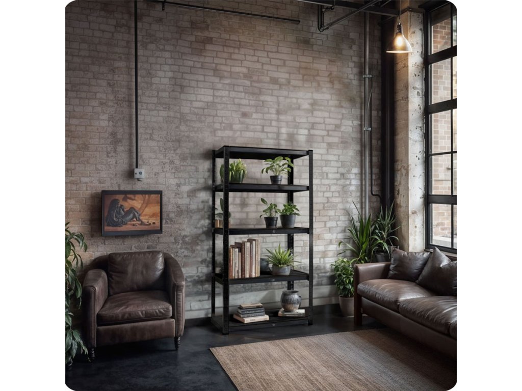 Funkcionalna i stabilna polica za skladište u crnoj boji, koja će se odlično pokazati u: