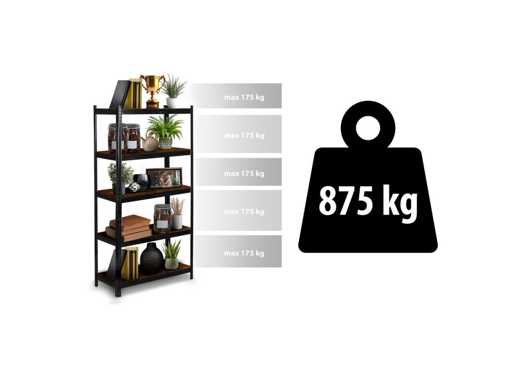Regal se sastoji od 5 polica, na koje možete smjestiti proizvode, kutije ili uređaje, maksimalno opteretiti svaku policu do 175 kg.