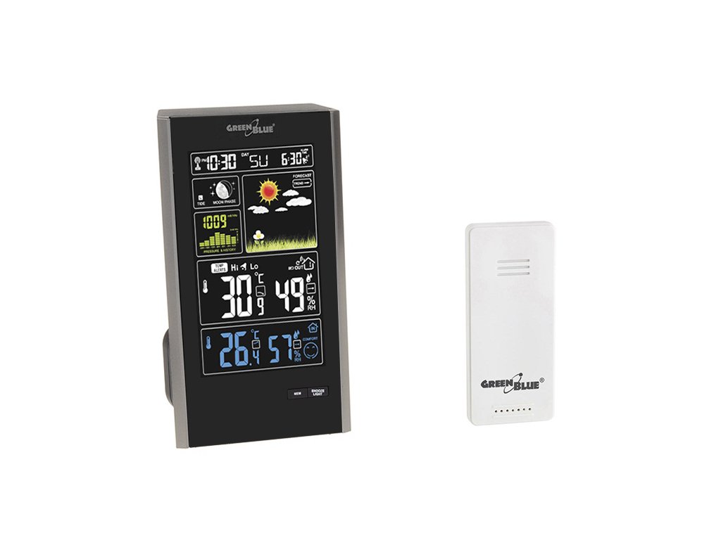 Bežično kućna meteorološka stanica DCF, tlak, faze mjeseca, USB punjač GreenBlue GB520 crnaKljučne prednosti: