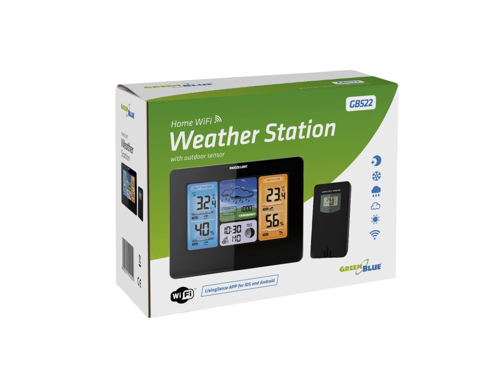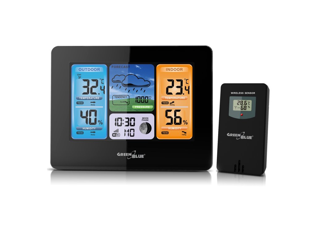 GreenBlue GB522 bežična šarena meteorološka postaja WiFi DCF faze mjesecaModerna meteorološka postaja s velikim, lako čitljivim zaslonom. Pouzdana, elegantna i jednostavna za korištenje meteorološka postaja GB522! Bežični senzor vanjske temperature s dometom do 60 m. Vrhunska kvaliteta zajamčena renomiranim proizvođačem.