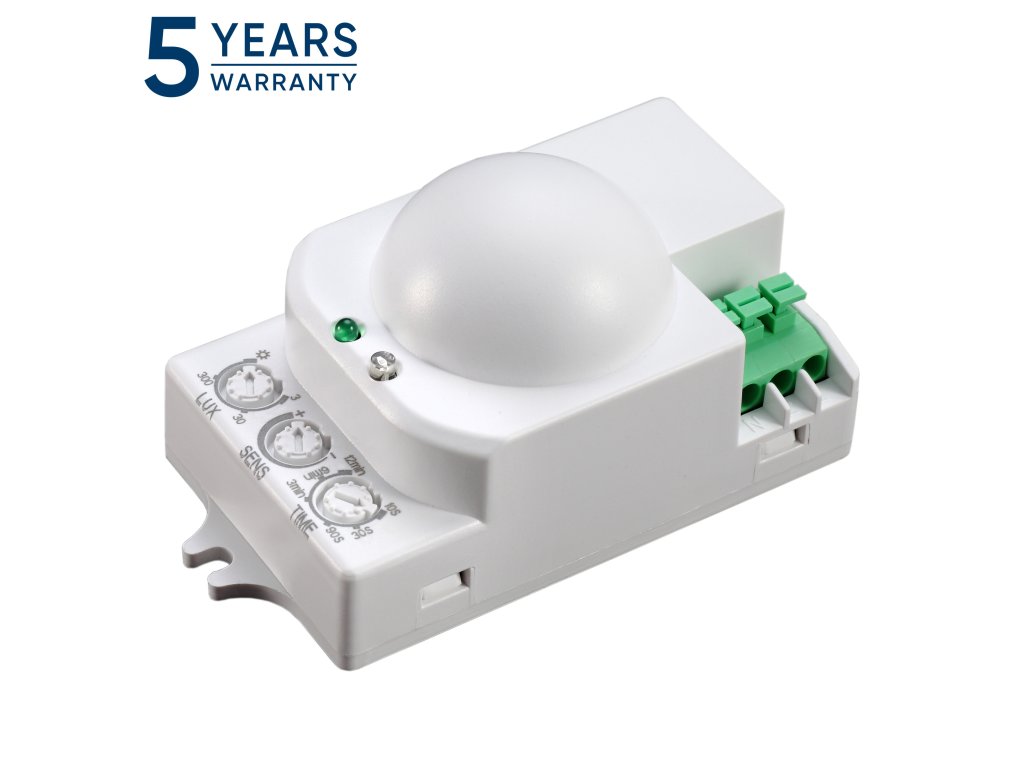 Mikrovalni senzor pokreta je napredni uređaj koji kombinira funkcionalnost i svestranost. Ovaj model, opremljen visokofrekventnim senzorom, ima široki kut skeniranja od 360°, koji u potpunosti pokriva nadzirano područje.Uređaj radi na frekvenciji od 5,8 GHz i detektira kretanje pri brzinama između 0,6 i 1,5 m/s. Senzor je opremljen postavkom svjetlosne jačine <3-2000 lux in order to adapt the sensor operation to the prevailing lighting conditions. The adjustment allows to change the motion detection distance. The device also allows the switching time to be adjusted from 10s-12min.
