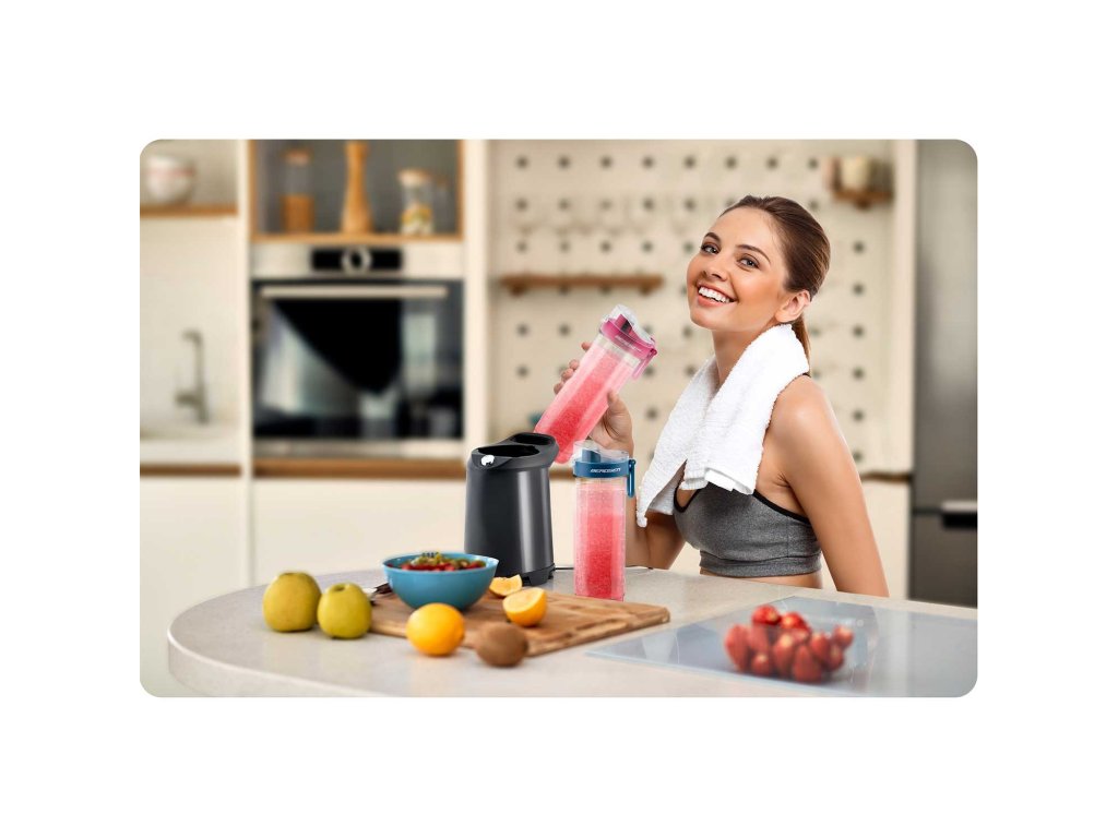 Štoviše — gotov napitak može se odmah, bez potrebe za prelijevanjem u drugu posudu, ponijeti sa sobom u auto, u teretanu ili u šetnju.