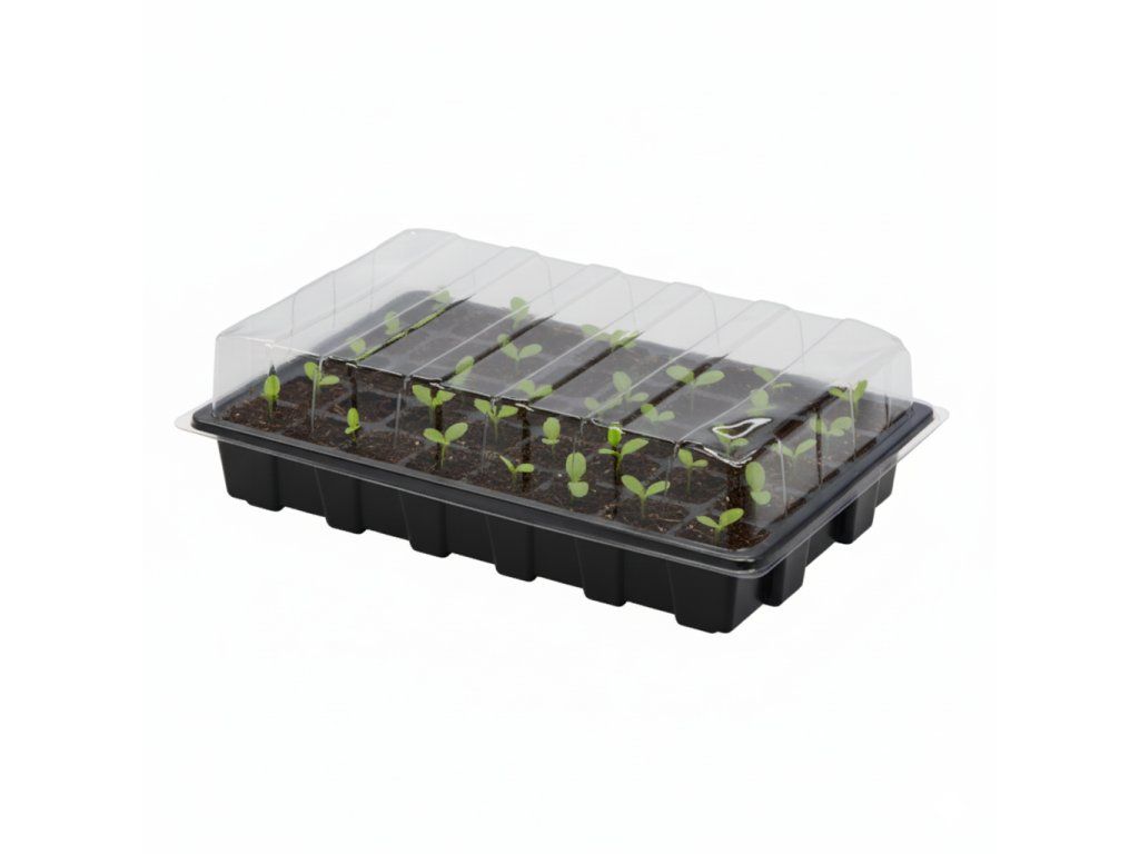 Mini staklenik pruža idealne uvjete za klijanje sjemena. Prozirni poklopac omogućava stalnu kontrolu sijanja i osigurava pristup svjetlu.Staklenik ima 40 ćelija za sjetvu, koje se mogu izvaditi u cjelini iz posude.
