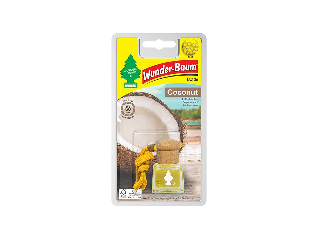 Osvježivač zraka u bočici. S mirisom kokosa. Djeluje do 12 tjedana . Isprobavač mirisa ugrađen u pakiranje. Miris vidljiv kroz staklo i estetski čep čine proizvod mirisnim ukrasom svakog retrovizora. Drveni čep upija ulje i postupno oslobađa miris, što jamči dugotrajan učinak proizvoda do 12 tjedana