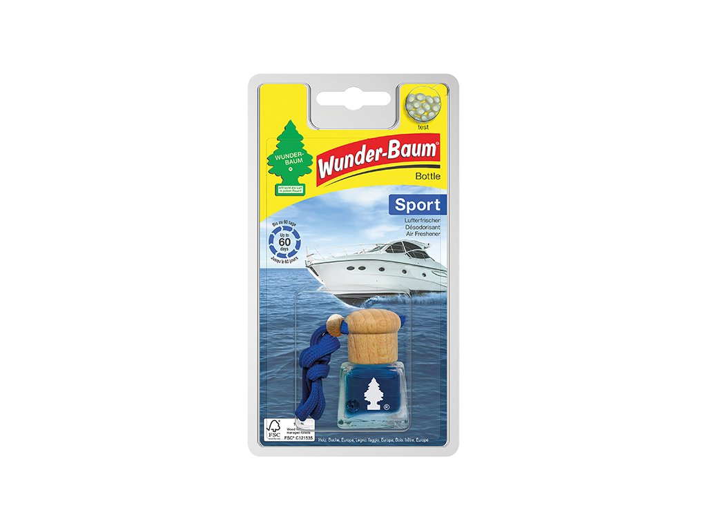 Osvježivač zraka u bočici. S mirisom adrenalina i sportskog natjecanja. Djeluje do 12 tjedana . Tester mirisa ugrađen u pakiranje. Miris vidljiv kroz staklo i estetski poklopac čine proizvod mirisnim ukrasom svakog retrovizora. Drveni poklopac apsorbira ulje i postupno oslobađa miris, što osigurava dugotrajan učinak proizvoda do 12 tjedana