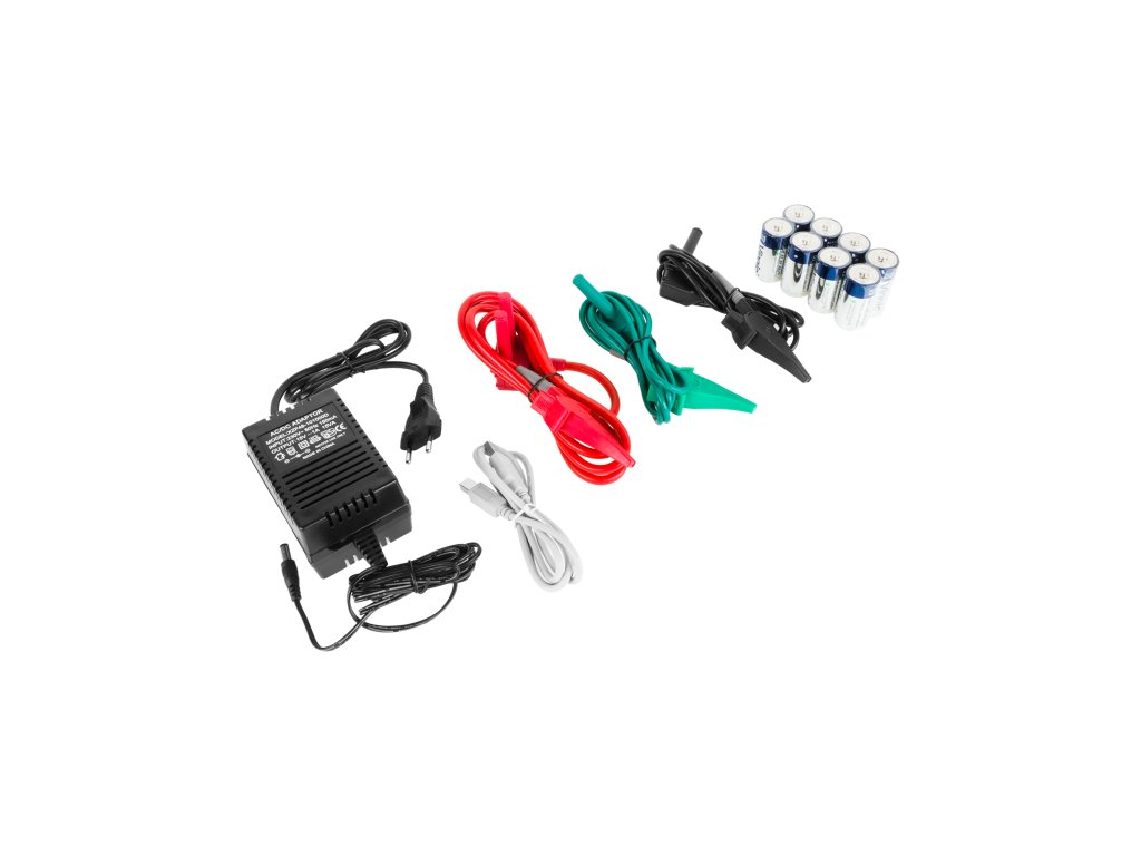 Uključeni dodaci: posebni mjerni kablovi s krokodil-štipaljkama, USB kabel, vanjski izvor napajanja, baterije, torbica