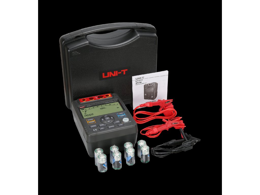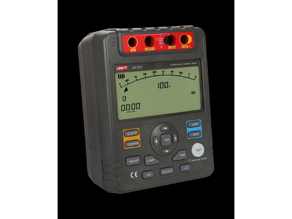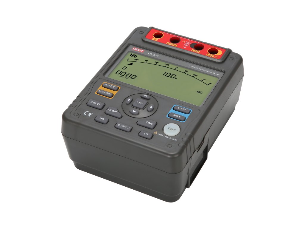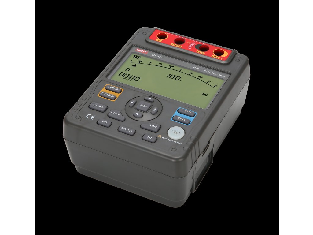 Mjerač izolacijskog otpora UNI-T UT511 je digitalni mjerni instrument namijenjen za elektroniku i električare. Omogućuje mjerenje velikih otpora do 10 GOhm pri ispitnom naponu od 1000 V. Osim toga, omogućuje mjerenje izmjeničnog i istosmjernog napona te malih otpora. Od mnogih drugih funkcija vrijedi spomenuti test dielektrične apsorpcije, indeksaciju polarizacije i funkciju usporedbe. Ovaj model zadovoljava normu IECG1010.