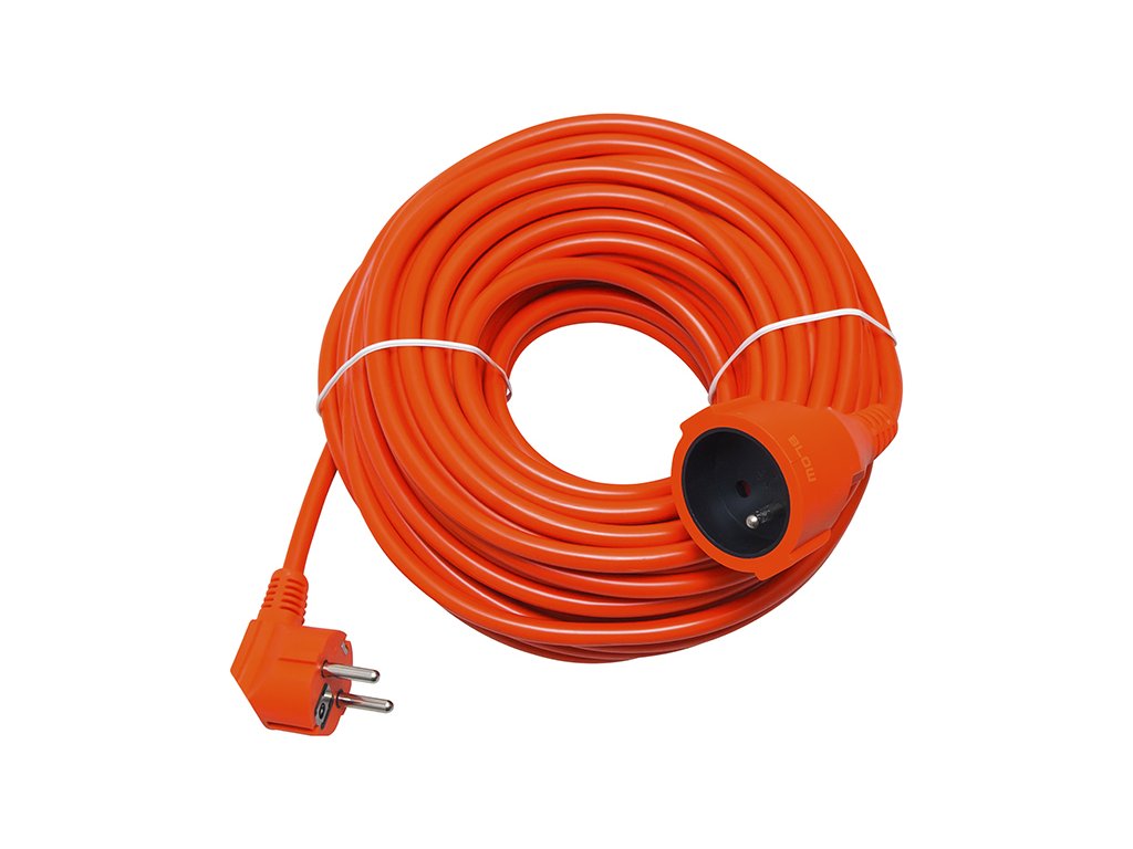 Narančasti produžni kabel BLOW s jednom utičnicom namijenjen za kućnu upotrebu. Kabel ima na jednoj strani utičnicu s uzemljenjem, a s druge strane jedan mrežni utikač. Zahvaljujući njemu možemo priključiti električne uređaje koji su udaljeni čak 20 m od utičnice.