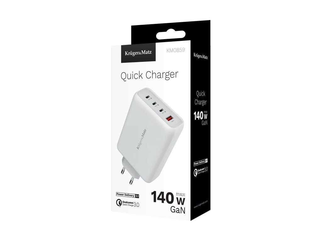 Mrežni punjač Kruger&Matz 140 W GaN s funkcijom Quick Charge i Power Delivery