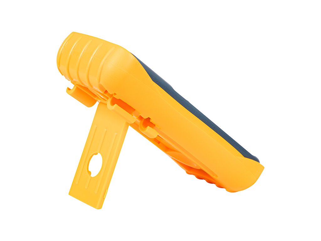 Plastična podrška ugrađena u kućište omogućuje postavljanje uređaja na način da je korisniku udobno i da mjerač ne mora neprestano držati u ruci - to će zasigurno olakšati ručni rad svih vrsta, a očitavanje rezultata mjerenja osigurat će izuzetno jasan i oštar LCD zaslon. Osim toga, odvojivi gumeni poklopac štiti uređaj od mehaničkih oštećenja i istovremeno štiti korisnika od električnog udara.