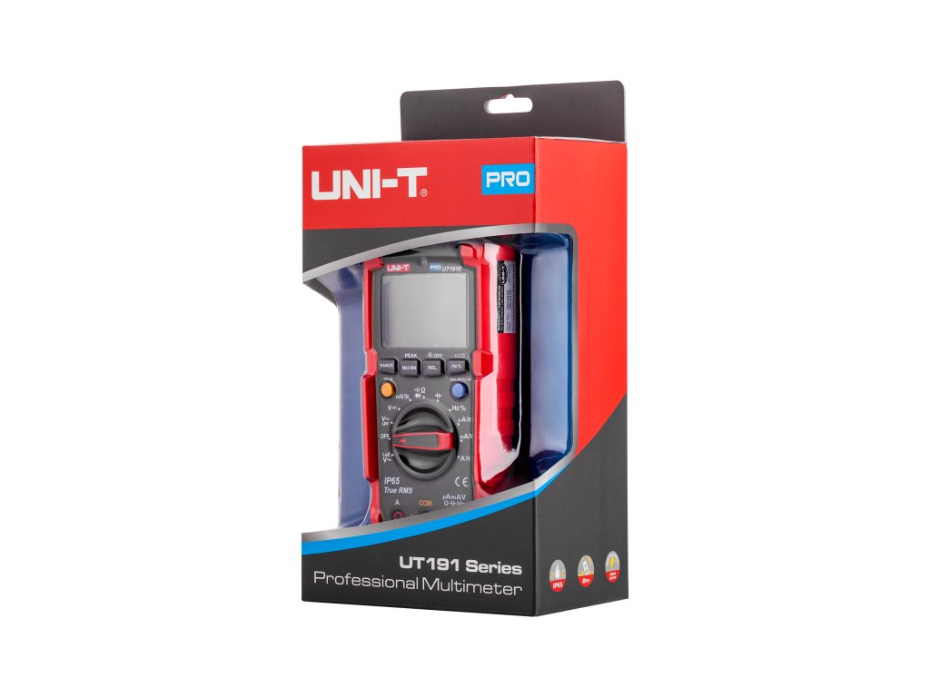 Instrument za mjerenje UNI-T Uni-T PRO UT191T spada među univerzalne instrumente za mjerenje, koji omogućavaju mjerenje osnovnih električnih količina, tj. istosmjernog ili izmjeničnog napona, istosmjernog ili izmjeničnog struja, kao i otpora. Osim toga, model omogućuje provjeru kontinuiteta kruga, testiranje dioda, kao i mjerenje kapaciteta temperature, frekvencije i faktora punjenja.