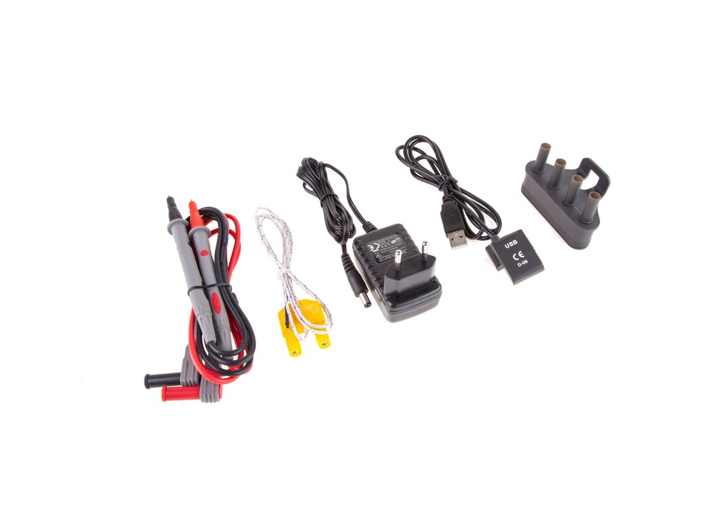 Pribor: ispitni kabeli, sonda za mjerenje temperature, USB kabel, punjač, punjačka utičnica, futrola