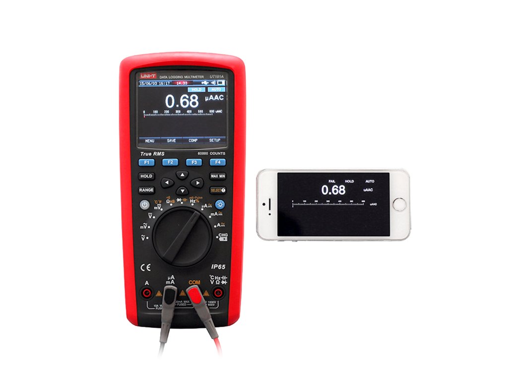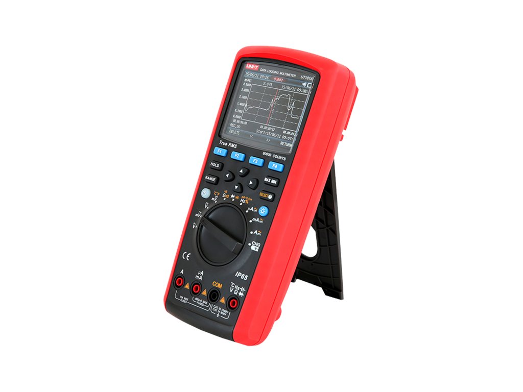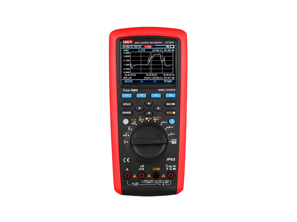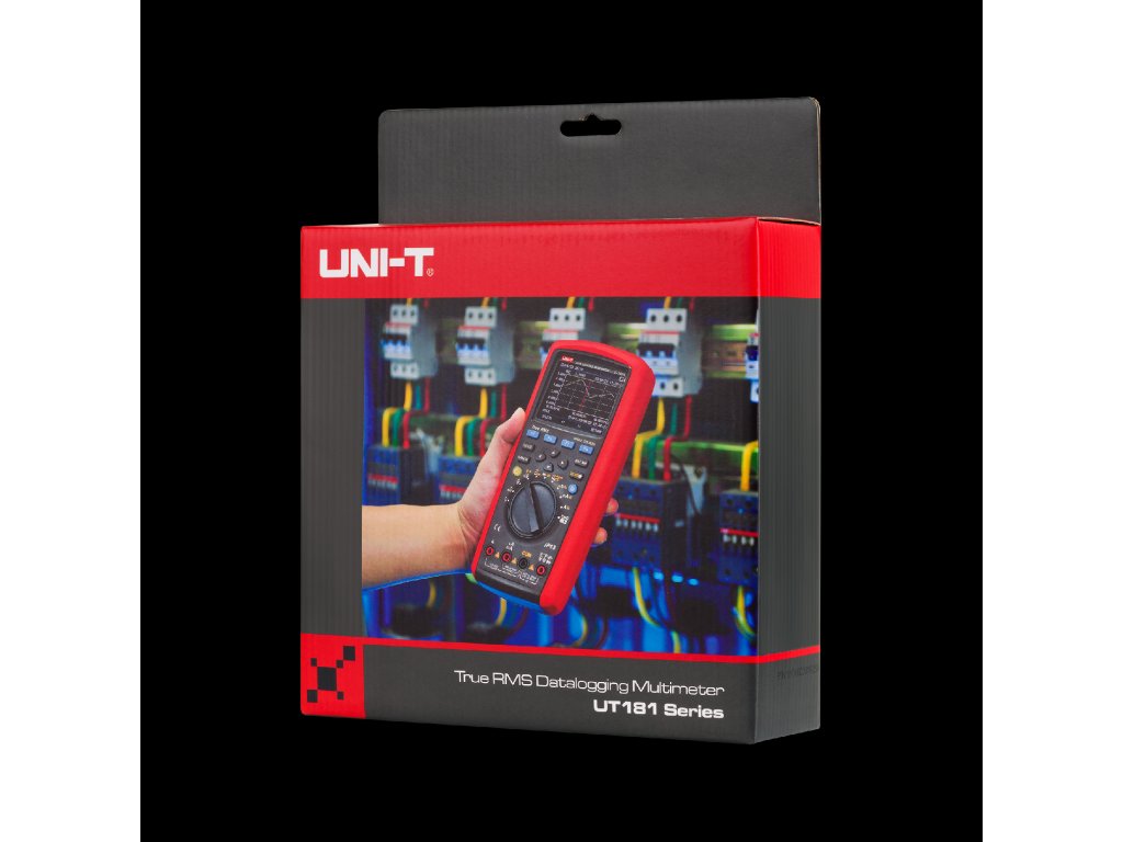 UT181A je višenamjenski digitalni mjerač s funkcijom TRUE RMS s 4,5 znamenkastim zaslonom u boji, koji omogućuje prikaz grafikona promjena tijekom vremena. Uređaj će vam pomoći da brzo izmjerite sve osnovne električne veličine i pohranite 20 000 izmjerenih vrijednosti. Osim toga, podaci se lako mogu preuzeti na računalo putem USB kabela. UT181A mjerač se može sigurno koristiti u svakoj radionici. Zahvaljujući IP65 standardu, uređaj je otporan na bilo kakvo prolijevanje vode i prodiranje prašine ili prljavštine.