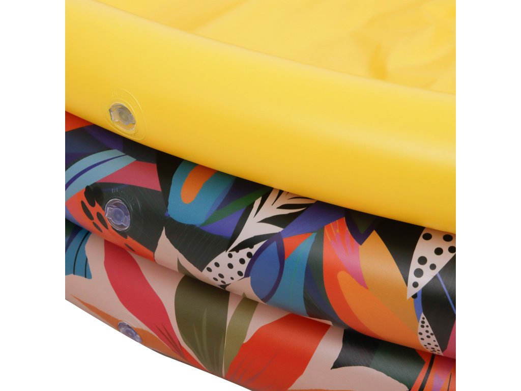 Sunčana, žuta boja i šareni cvjetni motivi čine bazen odmah atraktivnim za djecu. Izgleda veselo i ljetno, potičući na zabavu već od prvog pogleda. Nije to samo mjesto za prskanje – to je zona dječje radosti, gdje se stvaraju ljetni uspomeni. Savršeno se uklapa u svaki vrt ili na terasu.