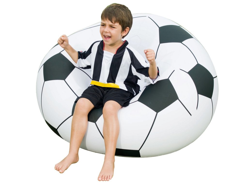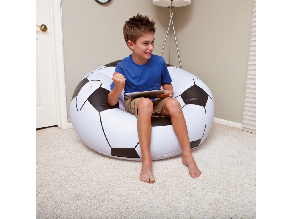 Originalna napuhavajuća fotelja s naslonom Bestway, u obliku nogometne lopte, dodatak je koji ne smije nedostajati u sobi strastvenog navijača. Udobna i praktična, obradovat će i djecu. U pakiranju se nalazi zakrpa za popravak.