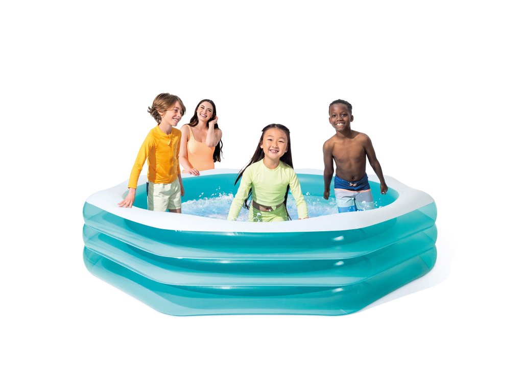 Napuhavajući vrtni bazen marke INTEX je model tako promišljeno dizajniran da ga zahvaljujući svojim dimenzijama 254 x 254 x 56 cm mogu koristiti ne samo djeca, nego i odrasli.