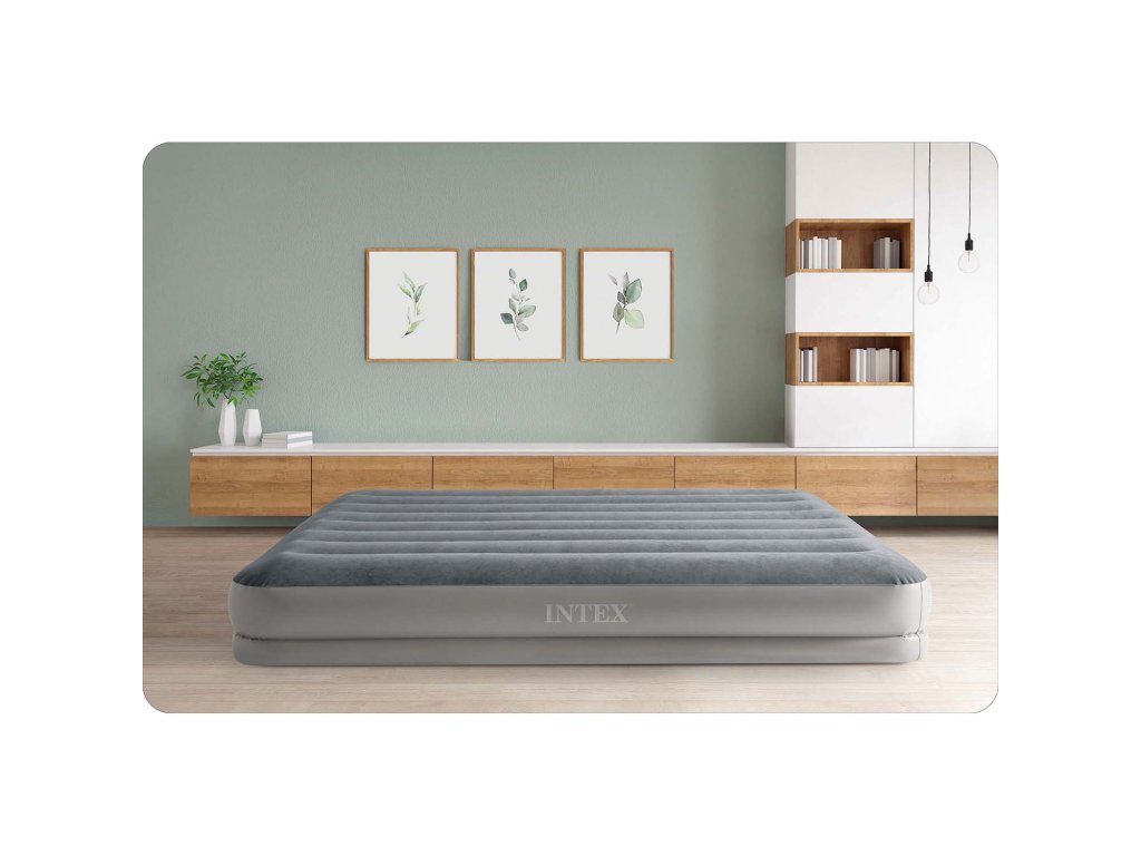 Napuhani madrac s ugrađenom pumpom ? dvostruki s dimenzijama: 203 x 152 x 30 cm Posebna konstrukcija madraca izrađena korištenjem provjerenih tehnologija jamči izdržljivost i udobnost korištenja. Što sadrži set Dvostruki madrac INTEX s dimenzijama: 203 x 152 x 30 cm, ugrađena električna pumpa na USB, zakrpa za popravak. Provjerene tehnologije od LIDERA TRŽIŠTA ? najviša kvaliteta materijala i izrade Svaki madrac ima certifikat AirLock, što znači da je prije napuštanja tvornice svaki proizvod temeljito testiran na nepropusnost! Madrac za cijelu obitelj ? ugodna veličina 203 x 152 x 30 cm Dimenzije madraca omogućuju udobno korištenje za najmanje dvije odrasle osobe. Također će biti dovoljno mjesta za razbuđenu djecu. Što čini madrace Intex tako udobnima i izdržljivima Tehnologija FIBER-TECH ? okvir od ultra izdržljivih vlakana Korištena vlakna FiberTech ne razvlače se s vremenom, čime se osigurava duži vijek trajanja i povećana izdržljivost madraca, što omogućava neprekinut komfor tijekom odmora. Tehnologija DURA-BEAM ? zahvaljujući njoj, madrac se ne urušava čak i pod velikom težinom! Ugrađena električna pumpa ? pumpa ugrađena u madrac - trenutak i madrac spreman za spavanje! Svaki madrac s ugrađenom električnom pumpom također omogućava pumpanje konvencionalnom pumpom. Tehnički podaci: dimenzije: 203 x 152 x 30 cm materijal: PVC, velur namjena: dvostruki maksimalno opterećenje: 272 kg napajanje pumpe: 12 V / 5 VAdditional parameters
